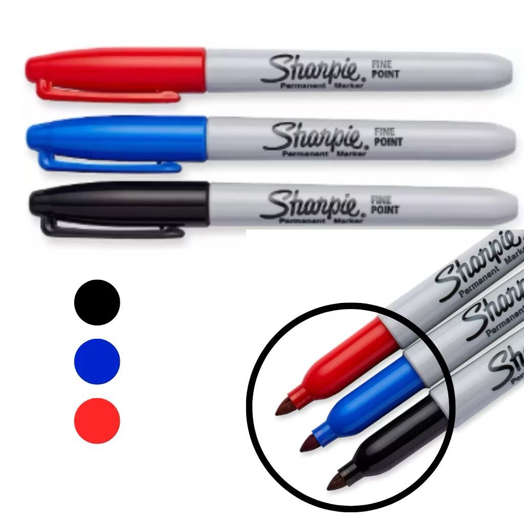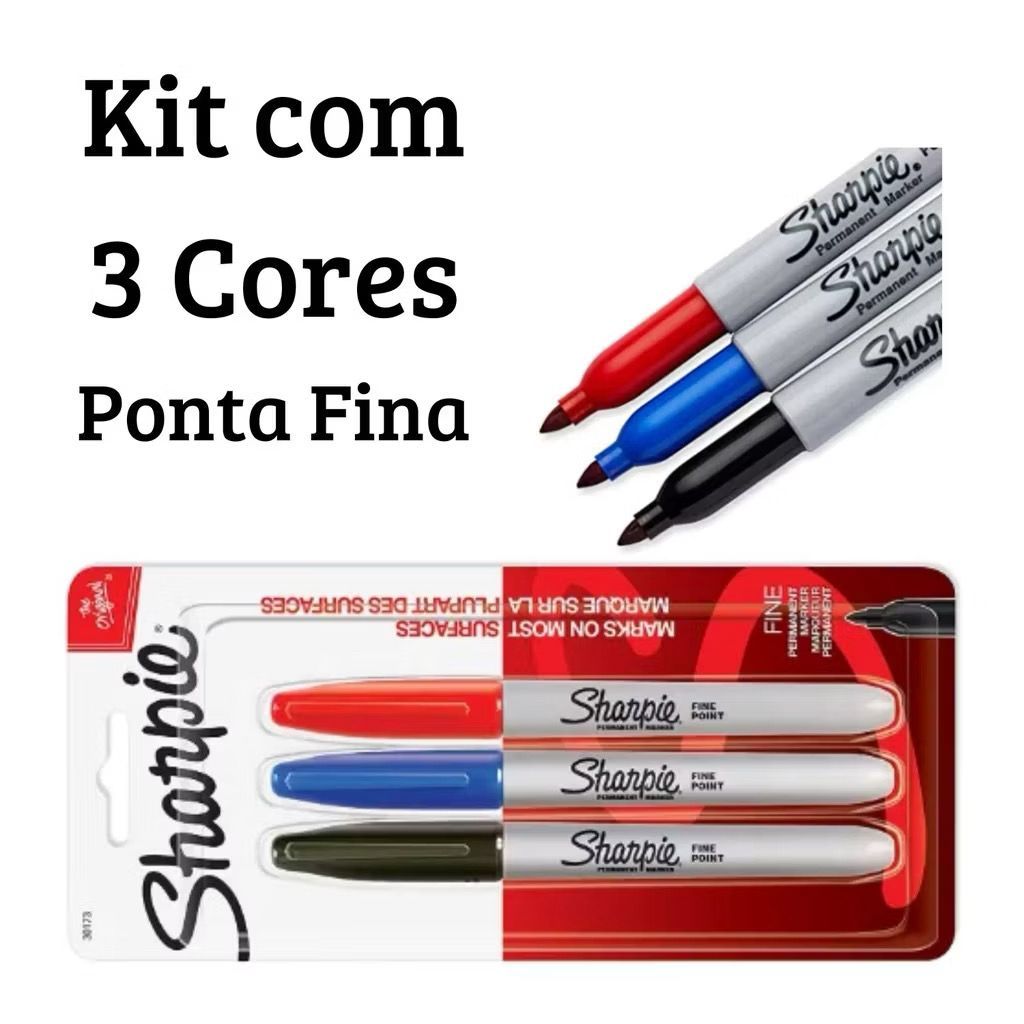 Kit Marcador Permanente Sharpie Ponta Fina 3 Un – Preto, Azul e Vermelho