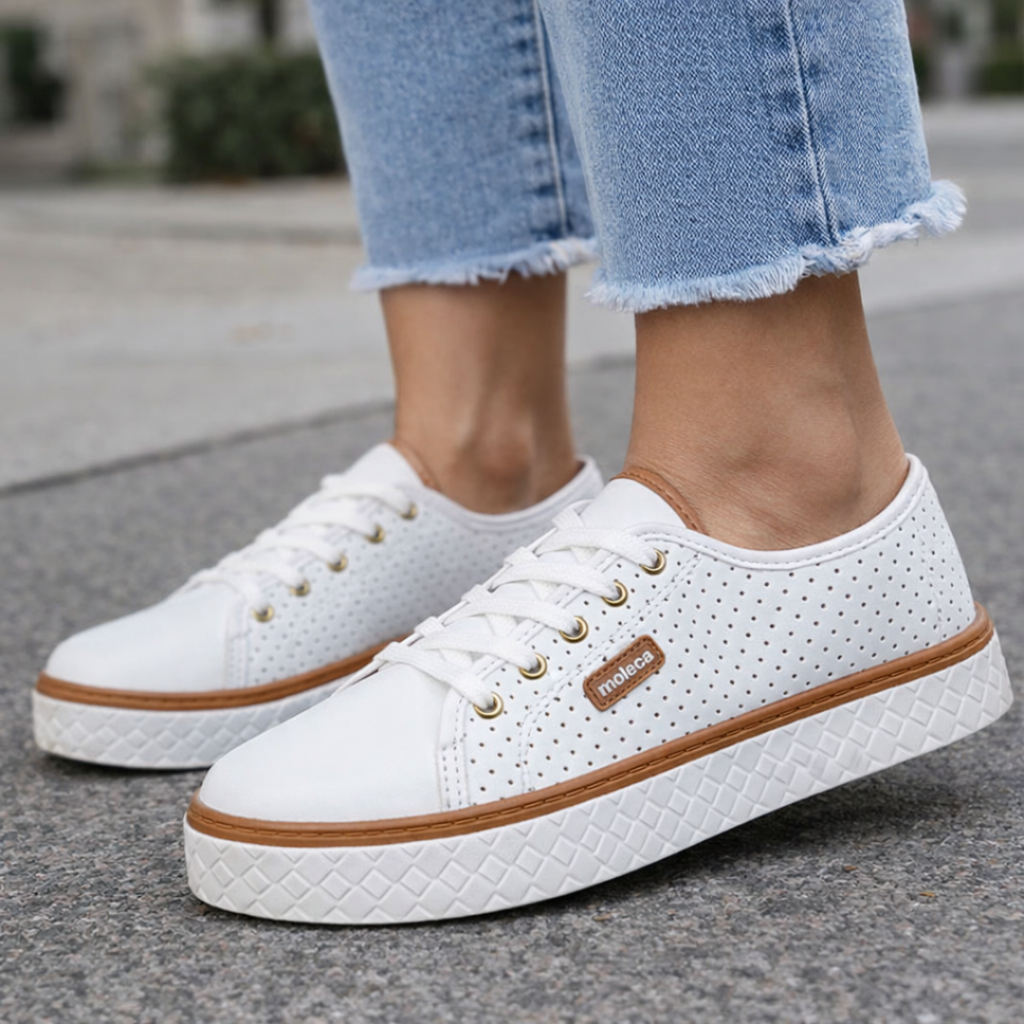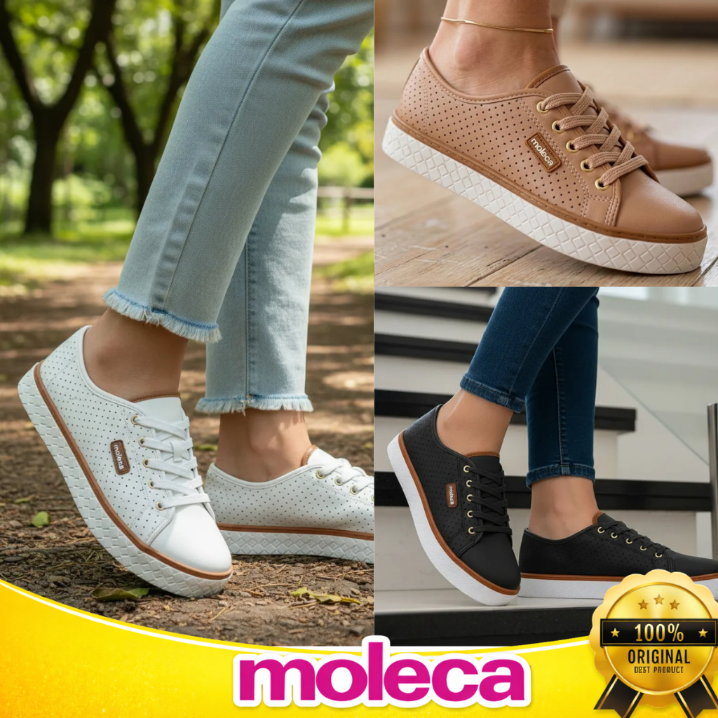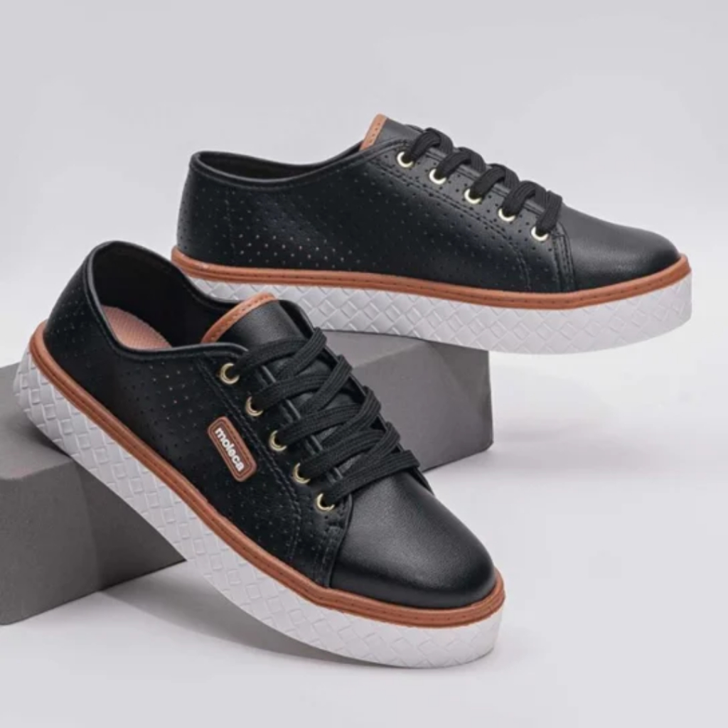 Tênis Moleca Feminino Sapatênis Casual Microperfuros Flatform Confortável Básico Macio Original