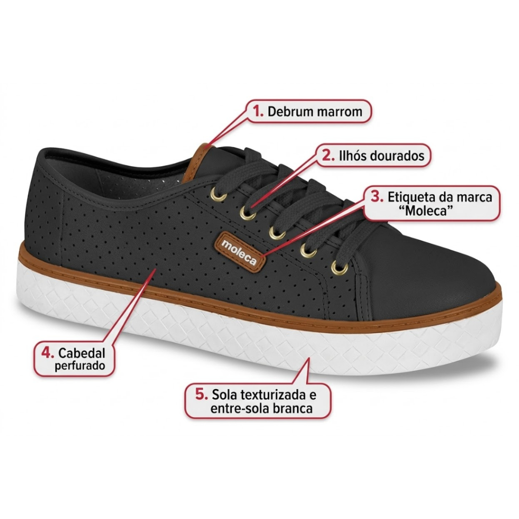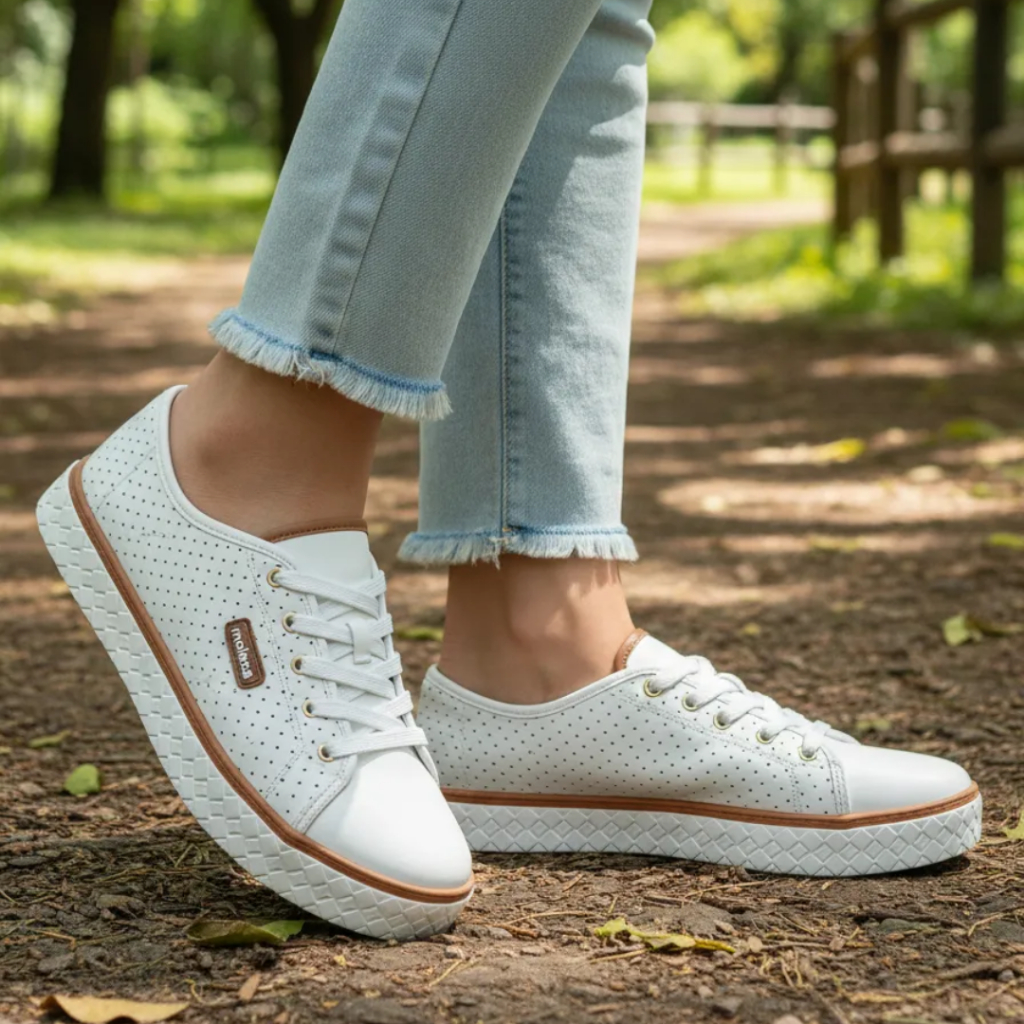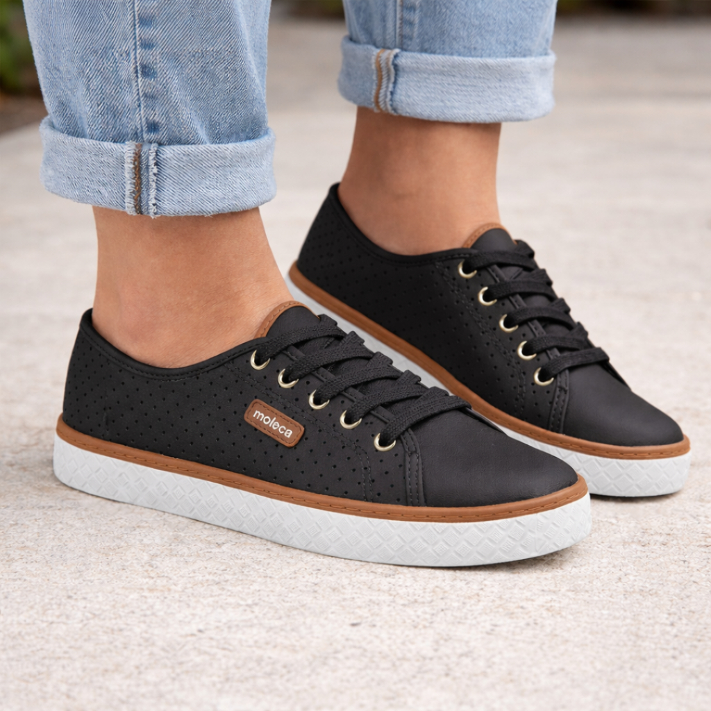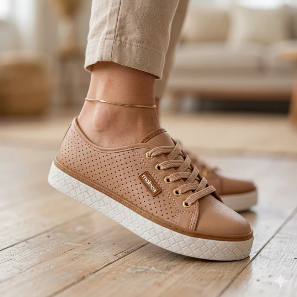 Tênis Moleca Feminino Sapatênis Casual Microperfuros Flatform Confortável Básico Macio Original