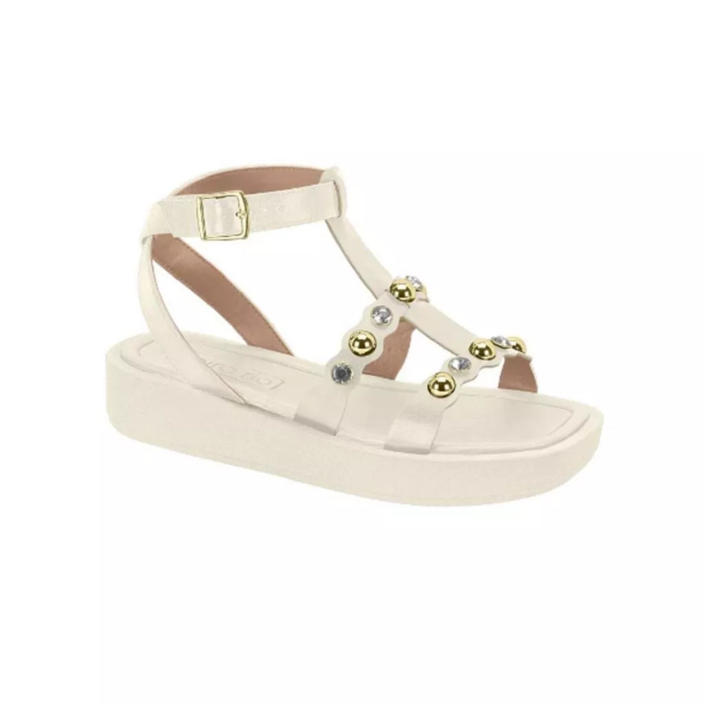 Sandalia Feminina Papete Flatform Conforto Macia Tachas Fivela Beira Rio