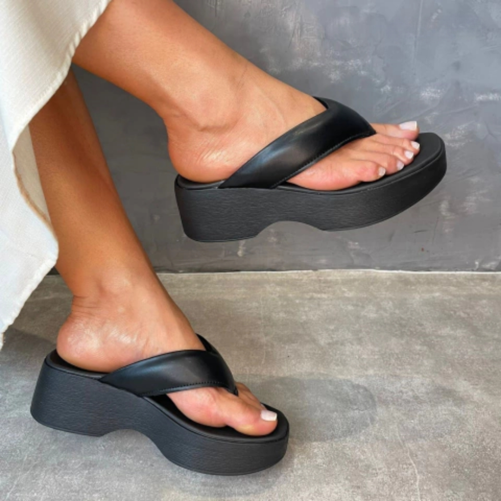 Chinelo Tamanco Feminino Plataforma Dedo Confortável Moleca