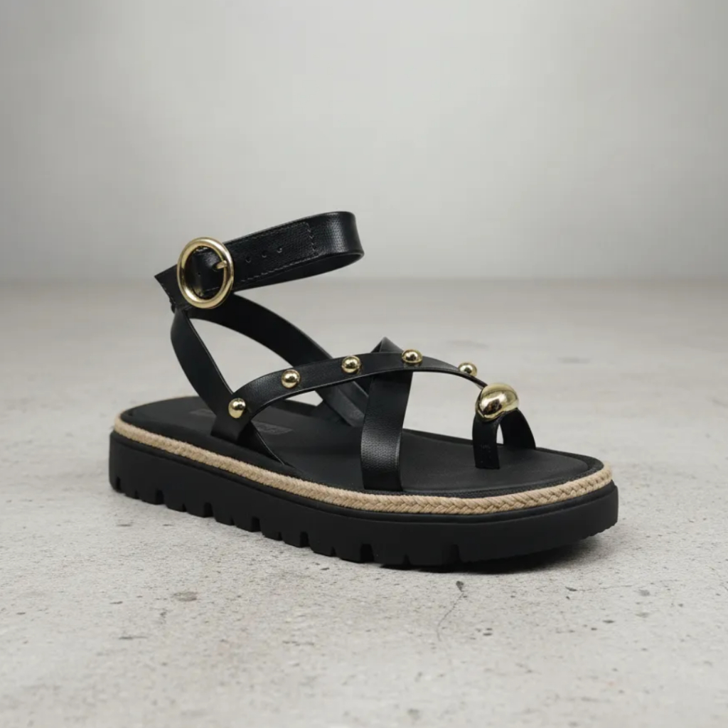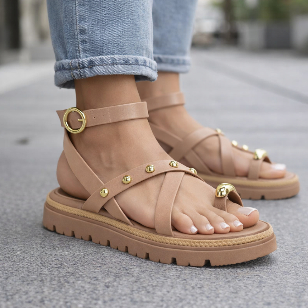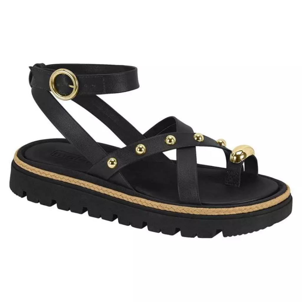 Sandália Moleca Feminina Papete Flatform Tratorada Ring Toe Dourado Confortável Original