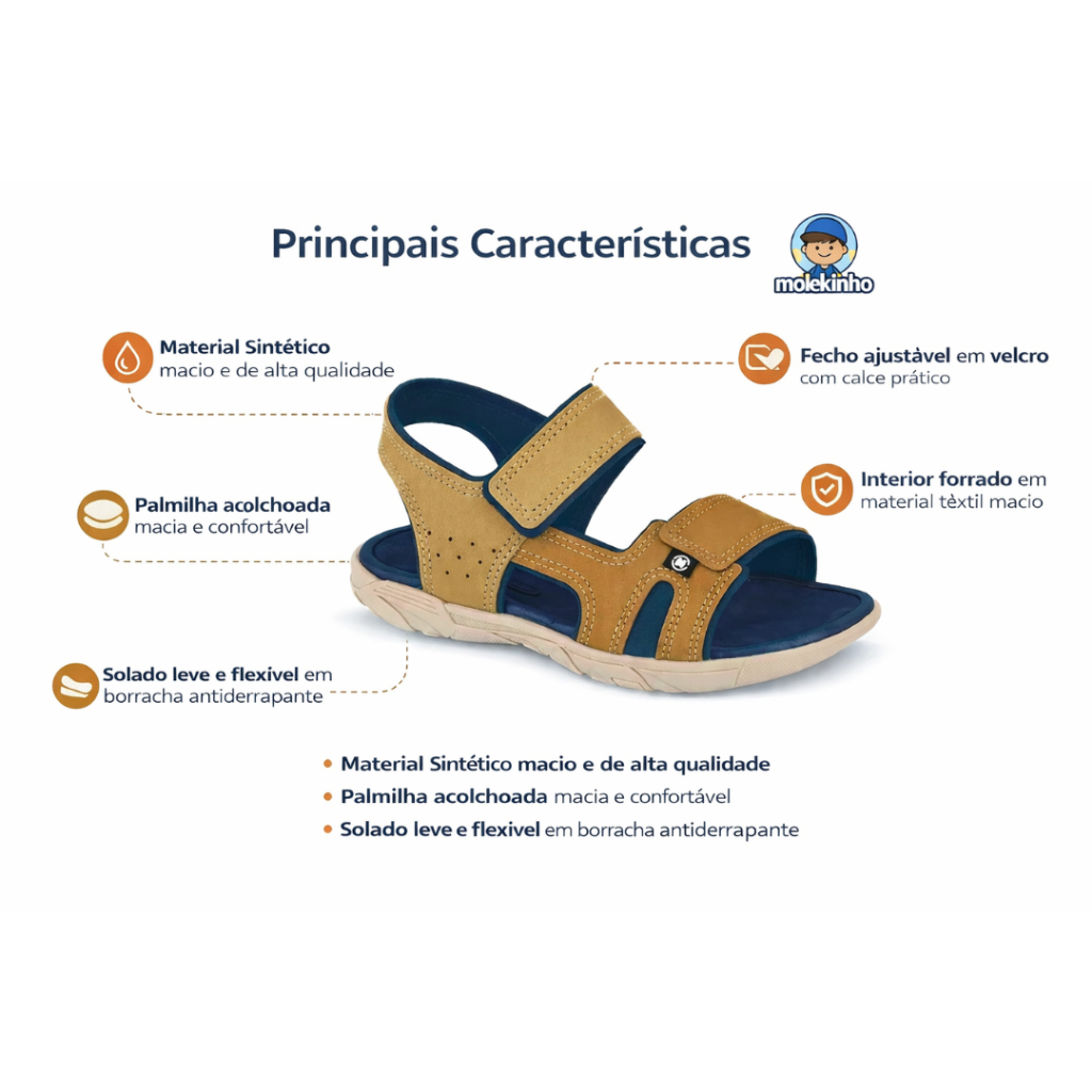 Sandália Molekinho Infantil Meninos Papete Ajustável Confortável Velcro Versatil Original