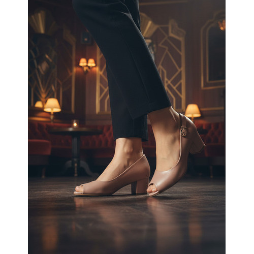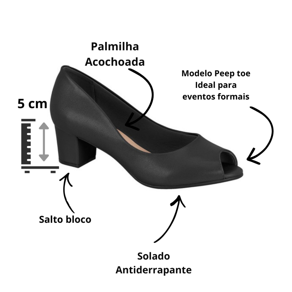 Sapato Feminino Scarpin Bico Peep Toe Salto Medio Grosso Beira Rio