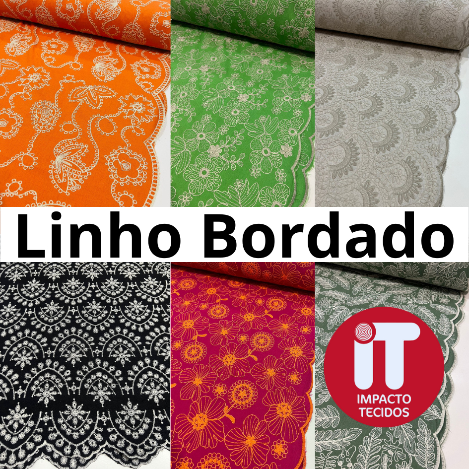 Tecido Linho Bordado 1 metro x 1,40 Varias estampas