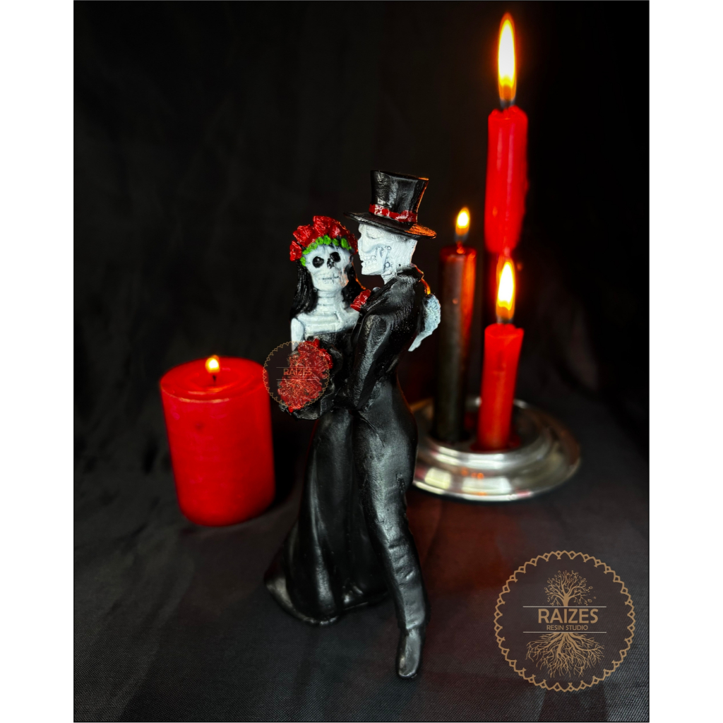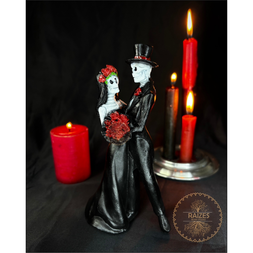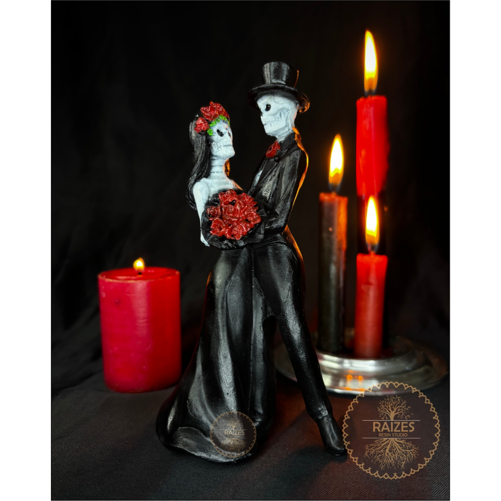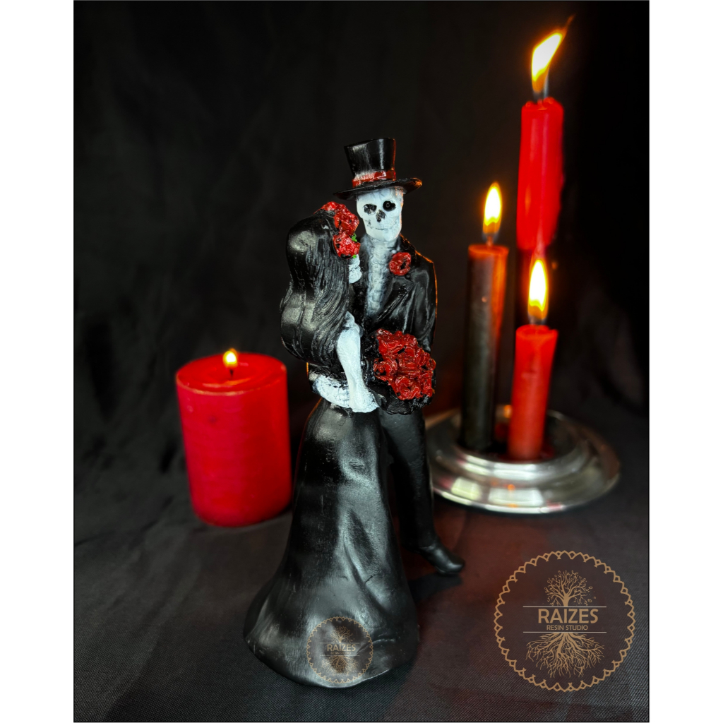 Estátua/Escultura Miniatura Casal Caveira Exu e Pombagira