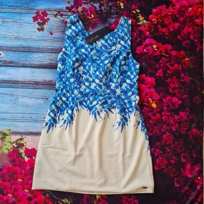 Vestido Cetim Regata Tubinho Estampado c/Strass - Capim Canela