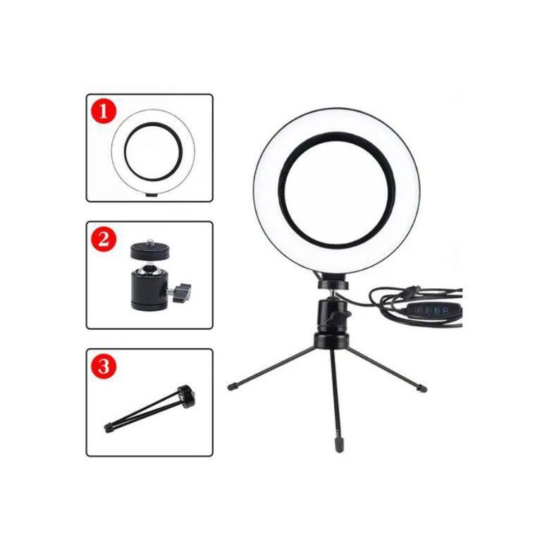 Ring Light Led Mesa Iluminador Pequena Tripé 6 Polegada 16cm