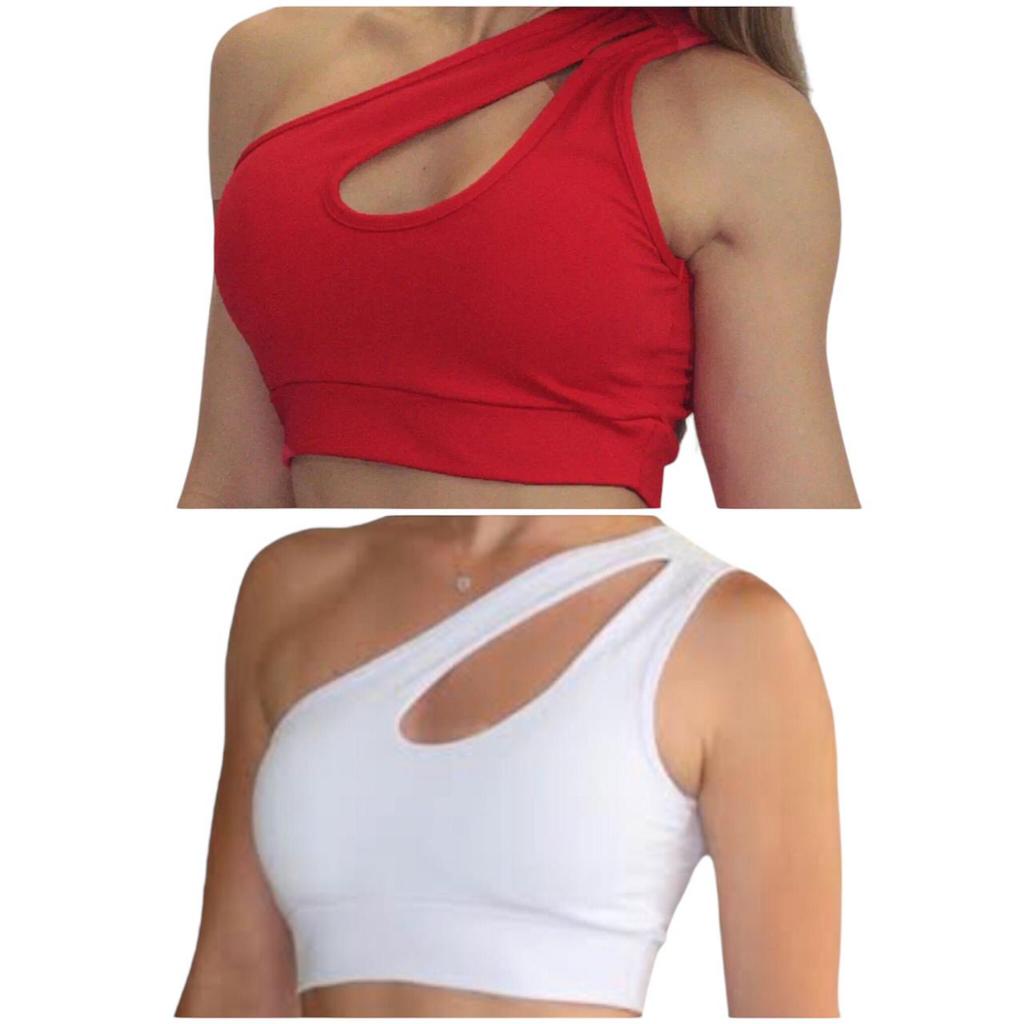 Kit 2 Top Gota de academia fitness suplex com bojo removivel ombro so