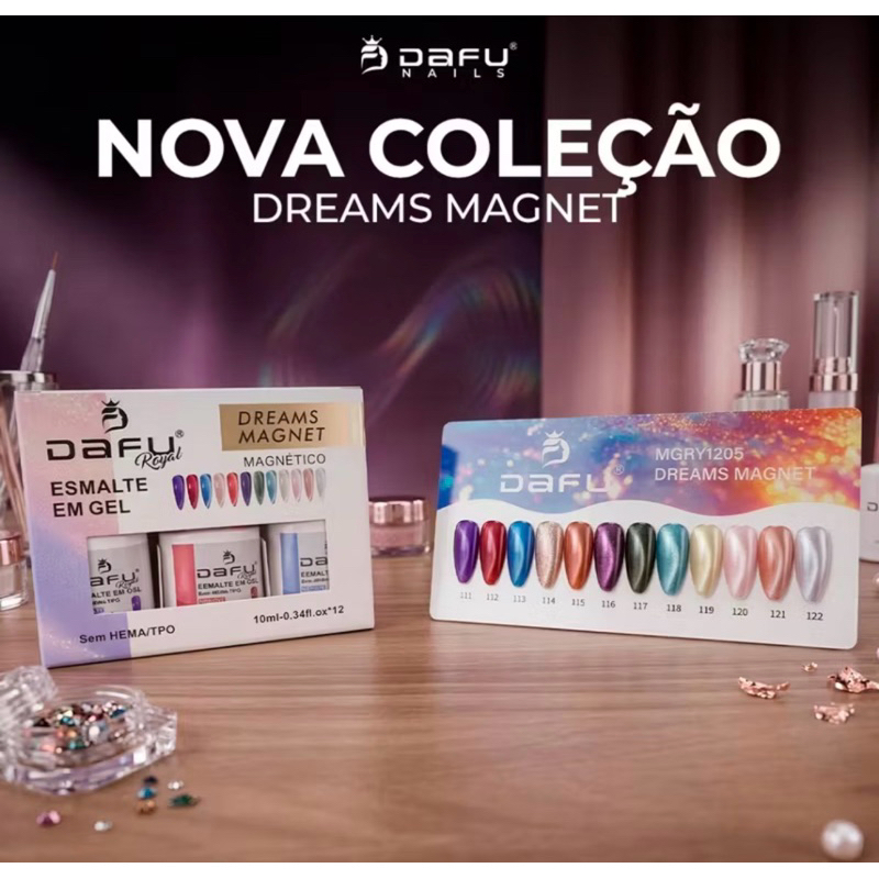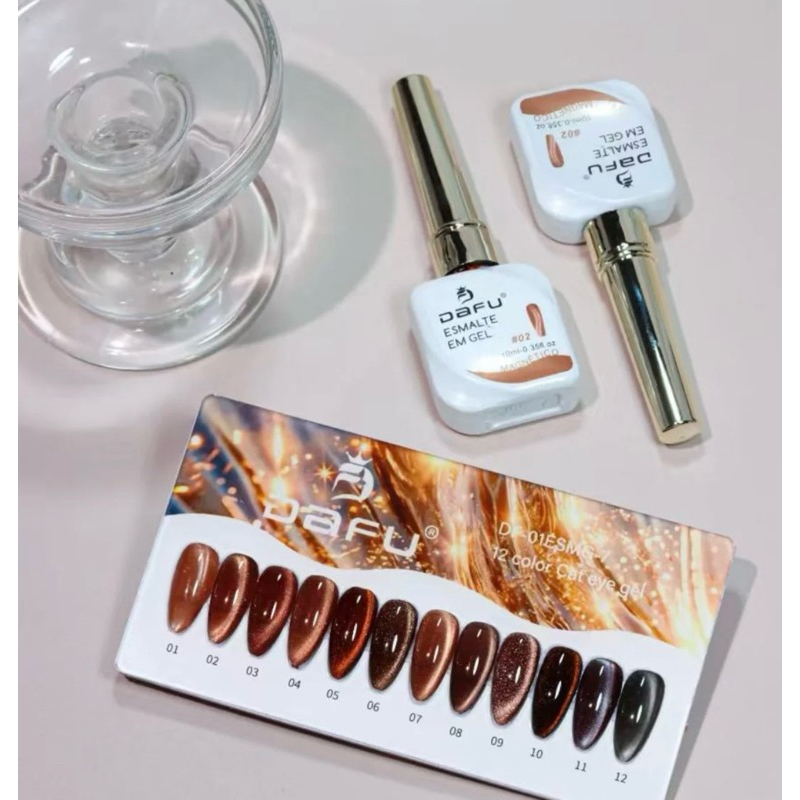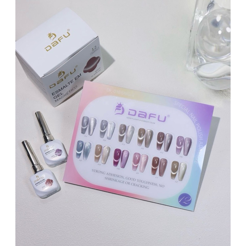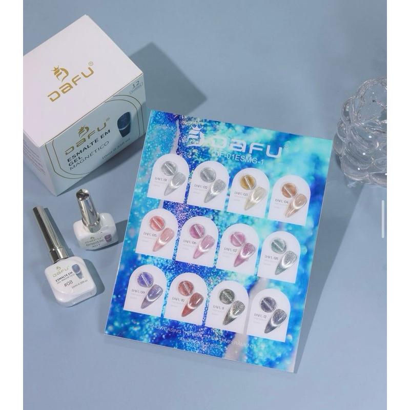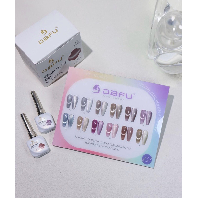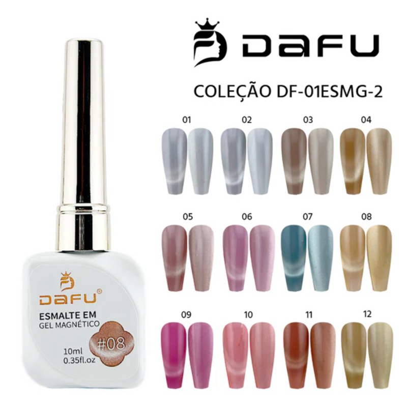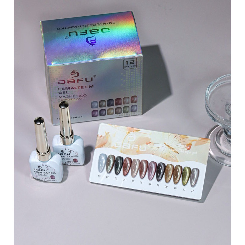 Kit 12 Esmaltes em Gel Magnético Dafu Novo Lançamento Olho de Gato Cat Eye Cores Impecáveis Nail Designer Manicure