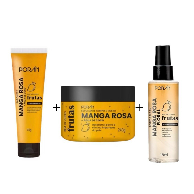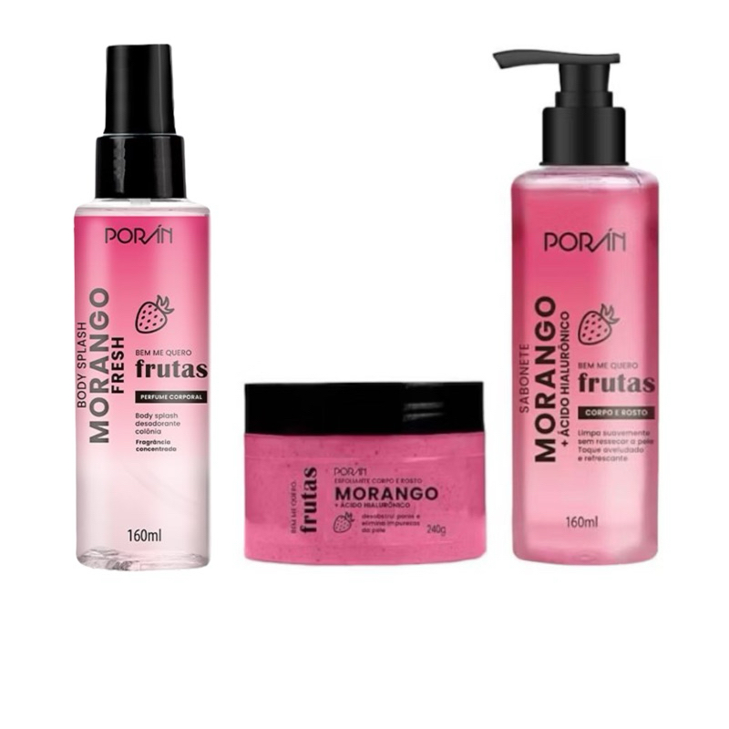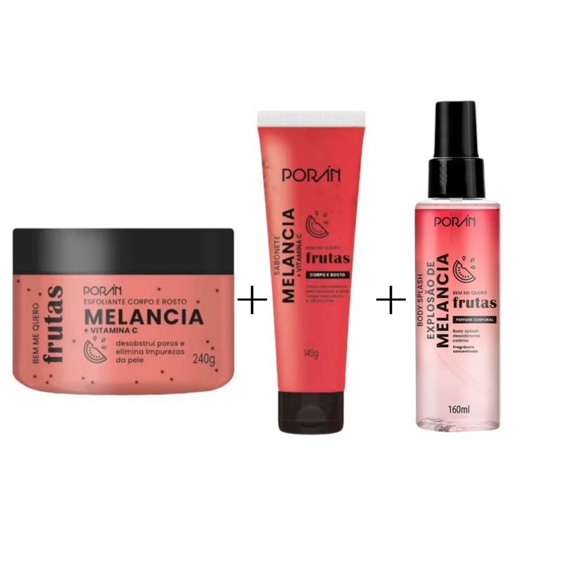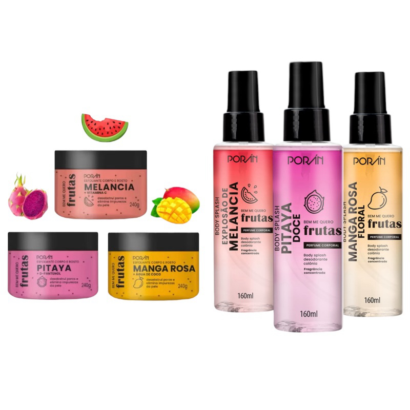 Esfoliante Poran Sabonete Body Splash Melância Manga Rosa Corpo e Rosto Cuidados com a Pele