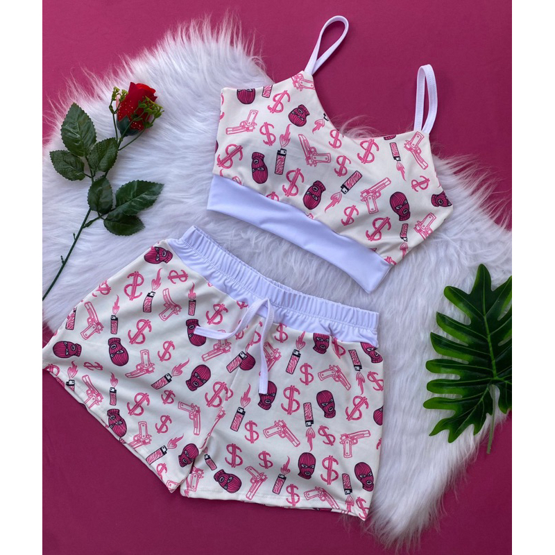 Conjunto feminino 2 peças shorts + cropped lilo & Stitch lilo & Stitch divertidamente estilo moda asthetic moda