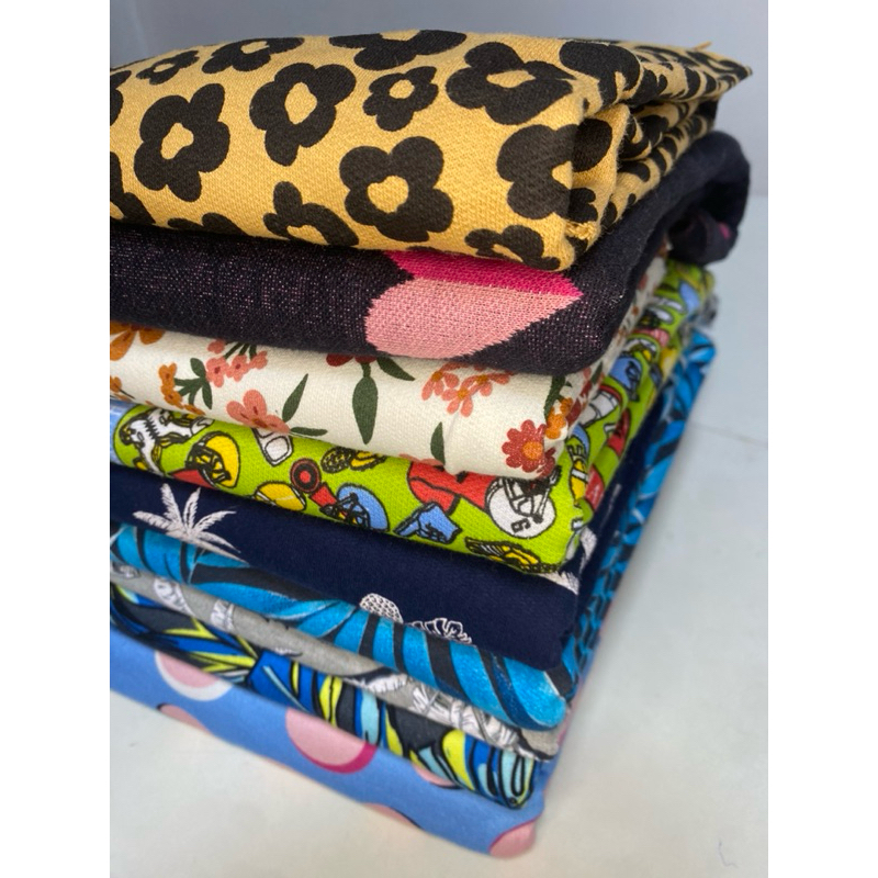 Retalhos de Malha Moletinho Estampado Moletom Careca p/ Casacos, Vestidos, Moda Inverno (1 KG = 2 METROS).