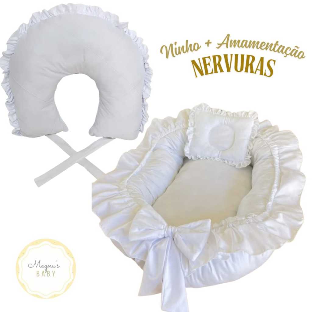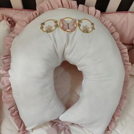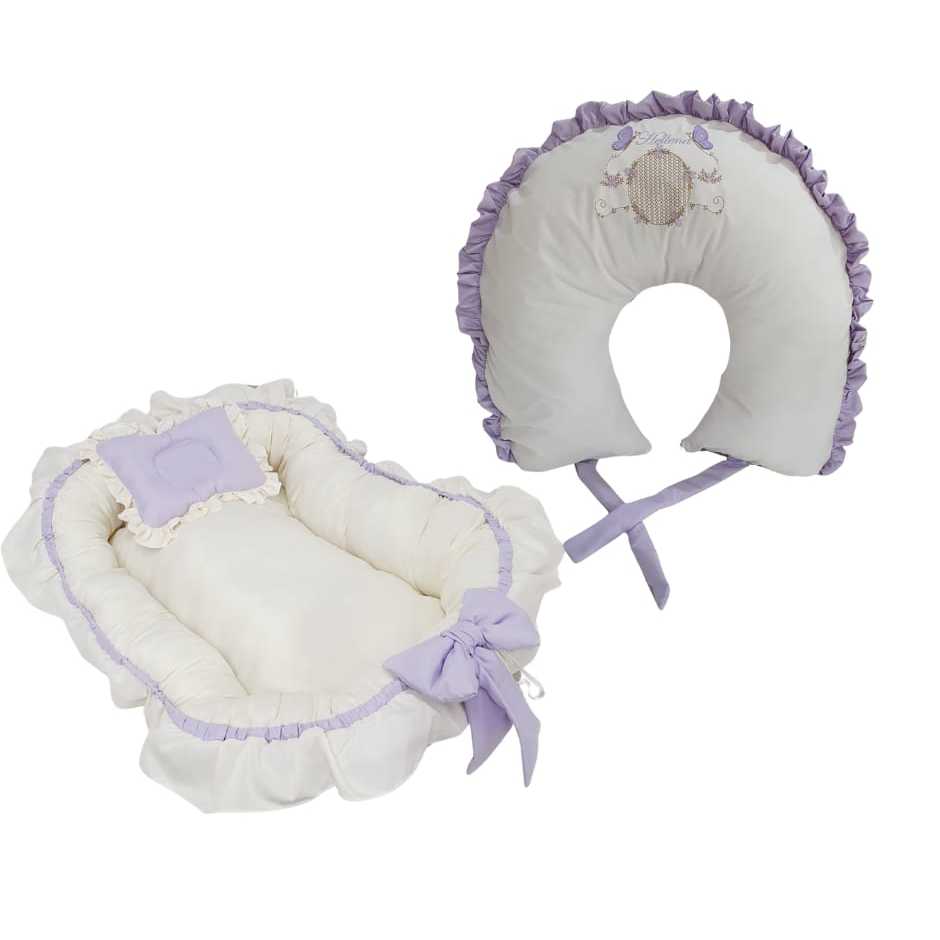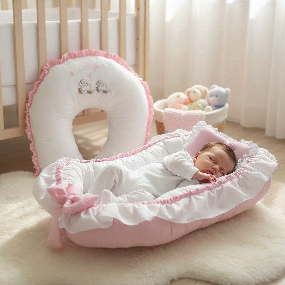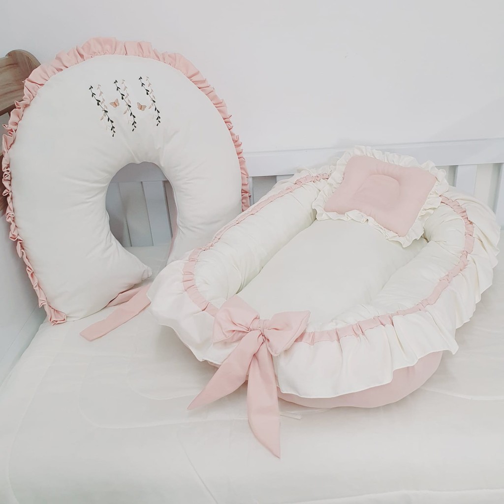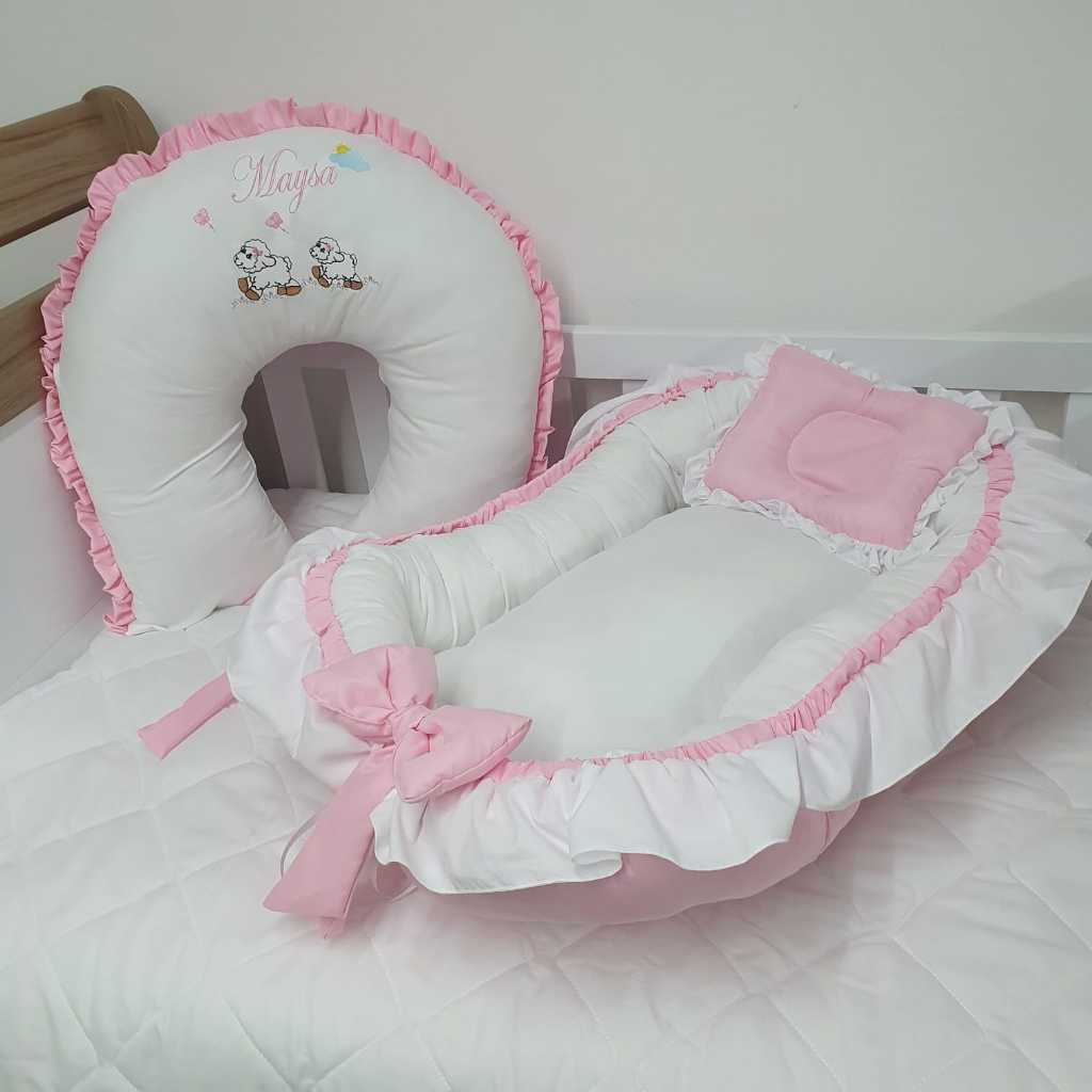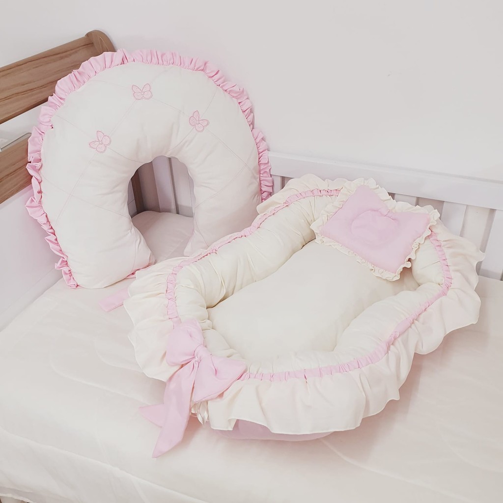 Ninho Redutor De Berço + Almofada de Amamentação com Babado e amarris Meninas