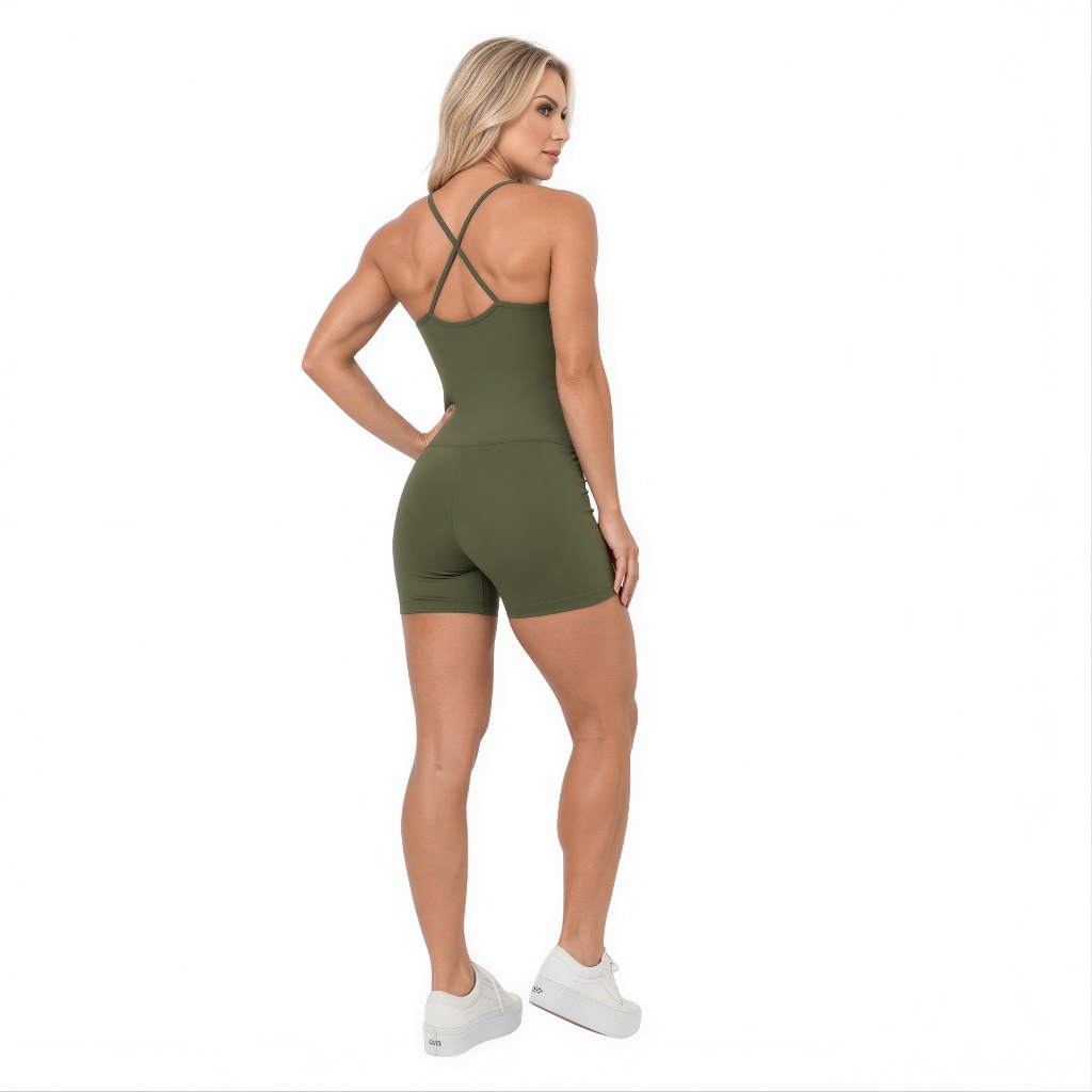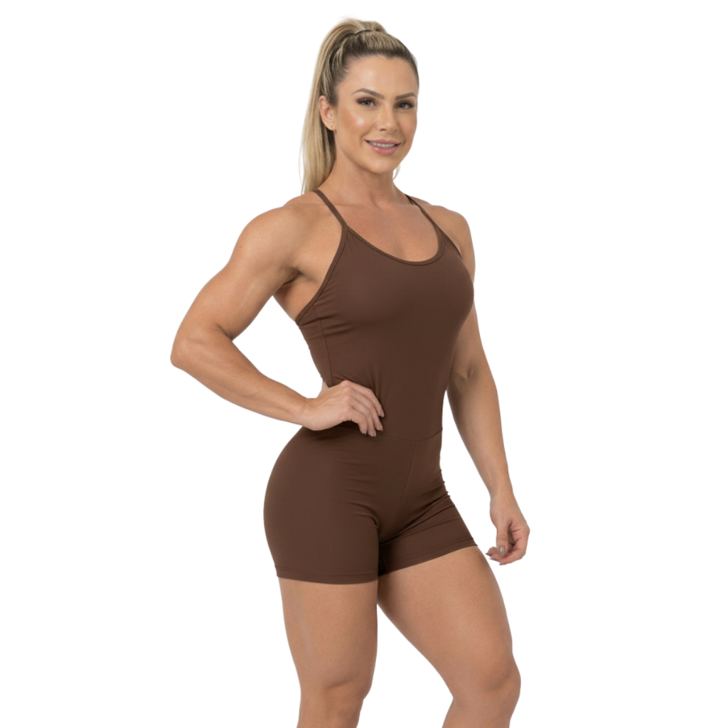 Macaquinho Feminino Alças Cruzadas Confortável Zero Transparência Forrado Modelagem Justa