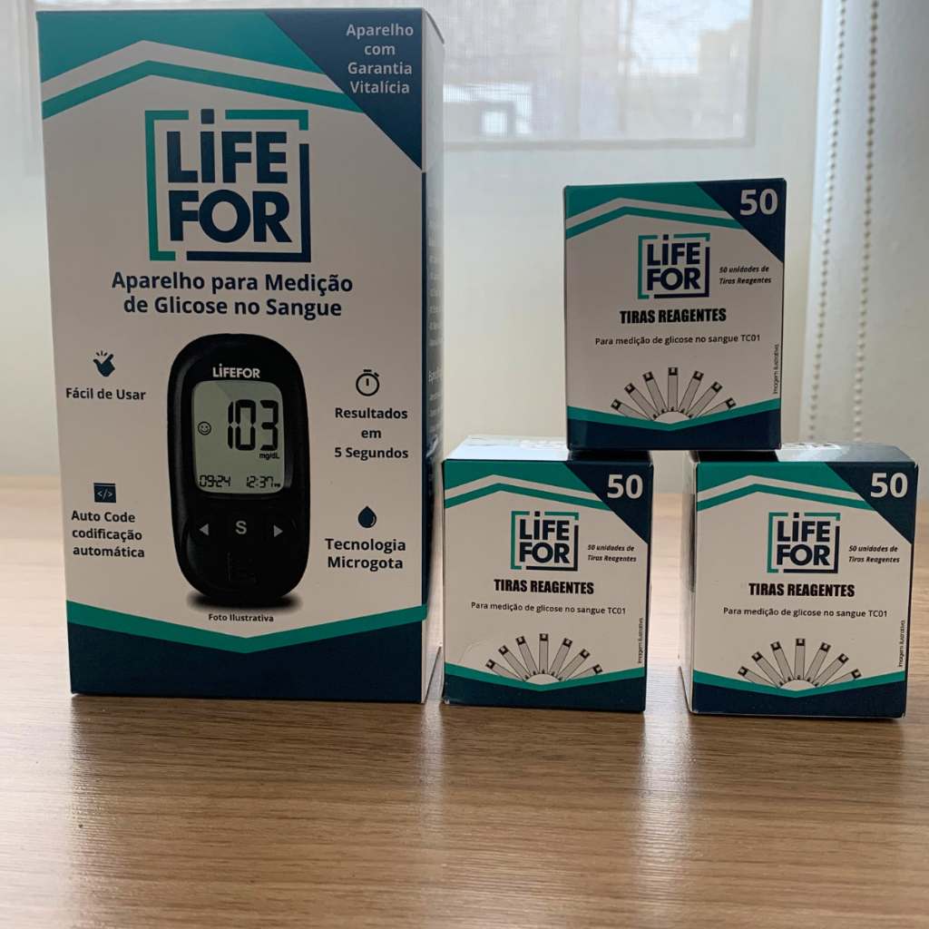 Kit Compre 3 Tiras Lifefor Ganhe 1 Aparelho Medidor Glicose
