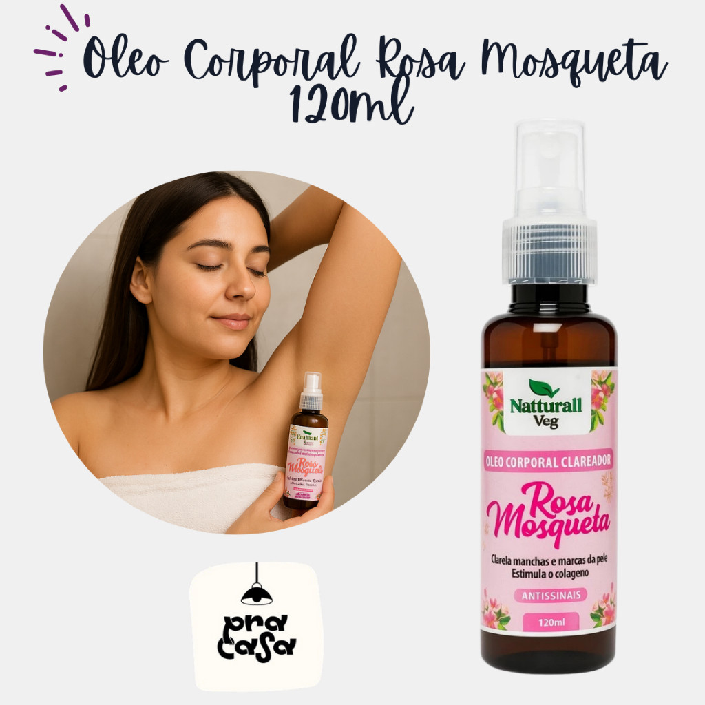 Óleo Rosa Mosqueta Corporal Spray Clareador Estimula Colágeno Clareia Manchas 120ml