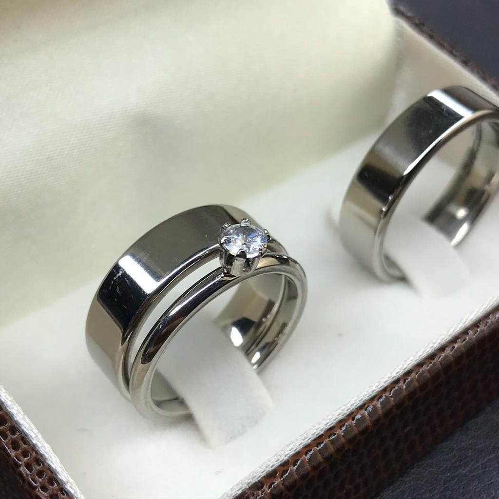 Aliança de Namoro Prata Grossa Quadrada 6mm Lisa Polida Tradicional Clássica em Aço Inoxidável com Anel Solitário Anel Namoro Prata