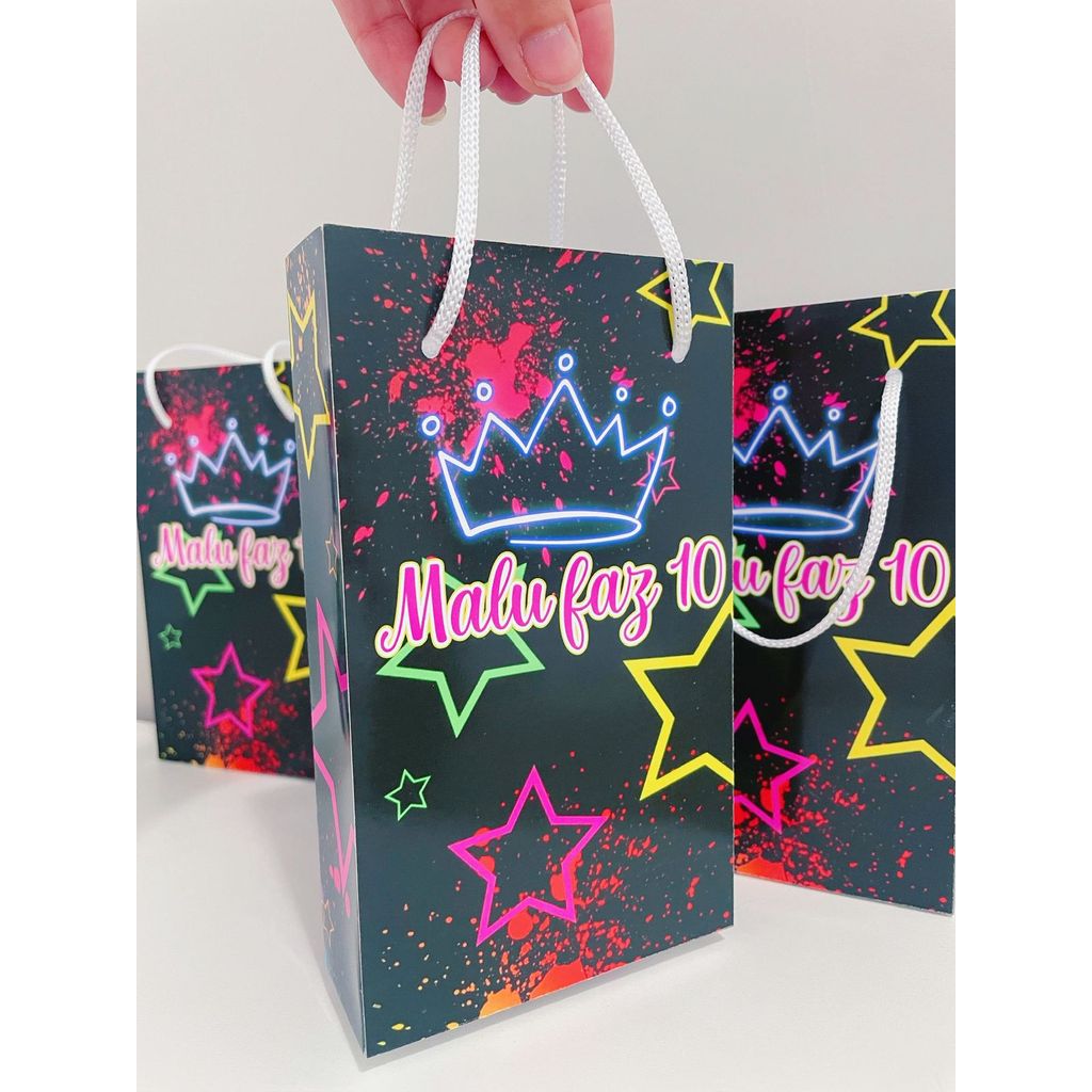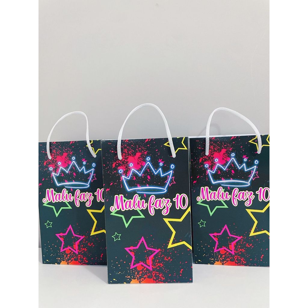 SACOLINHA NEON PERSONALIZADA COM NOME E IDADE PEGUE E MONTE