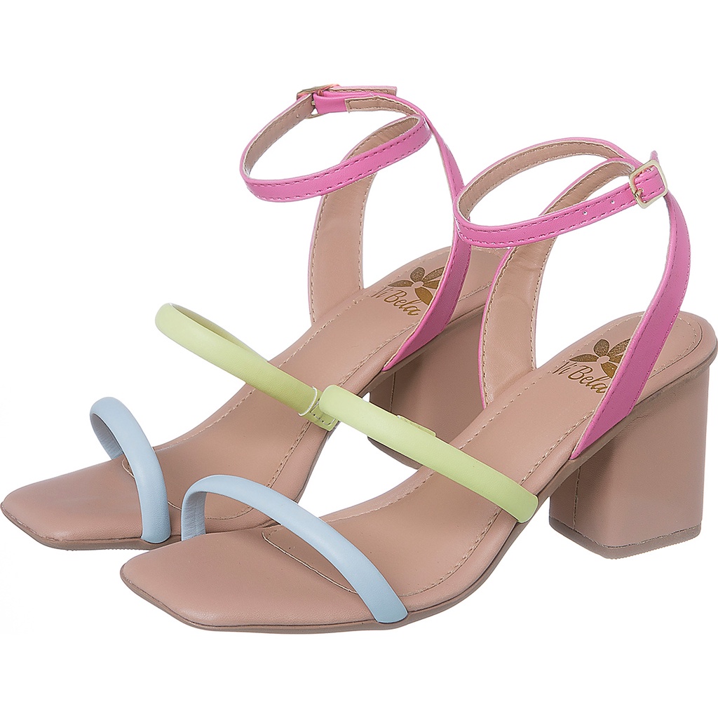Sandália Feminina Colorida Salto Bloco Neon Tiras Moda Blogueira Lançamento