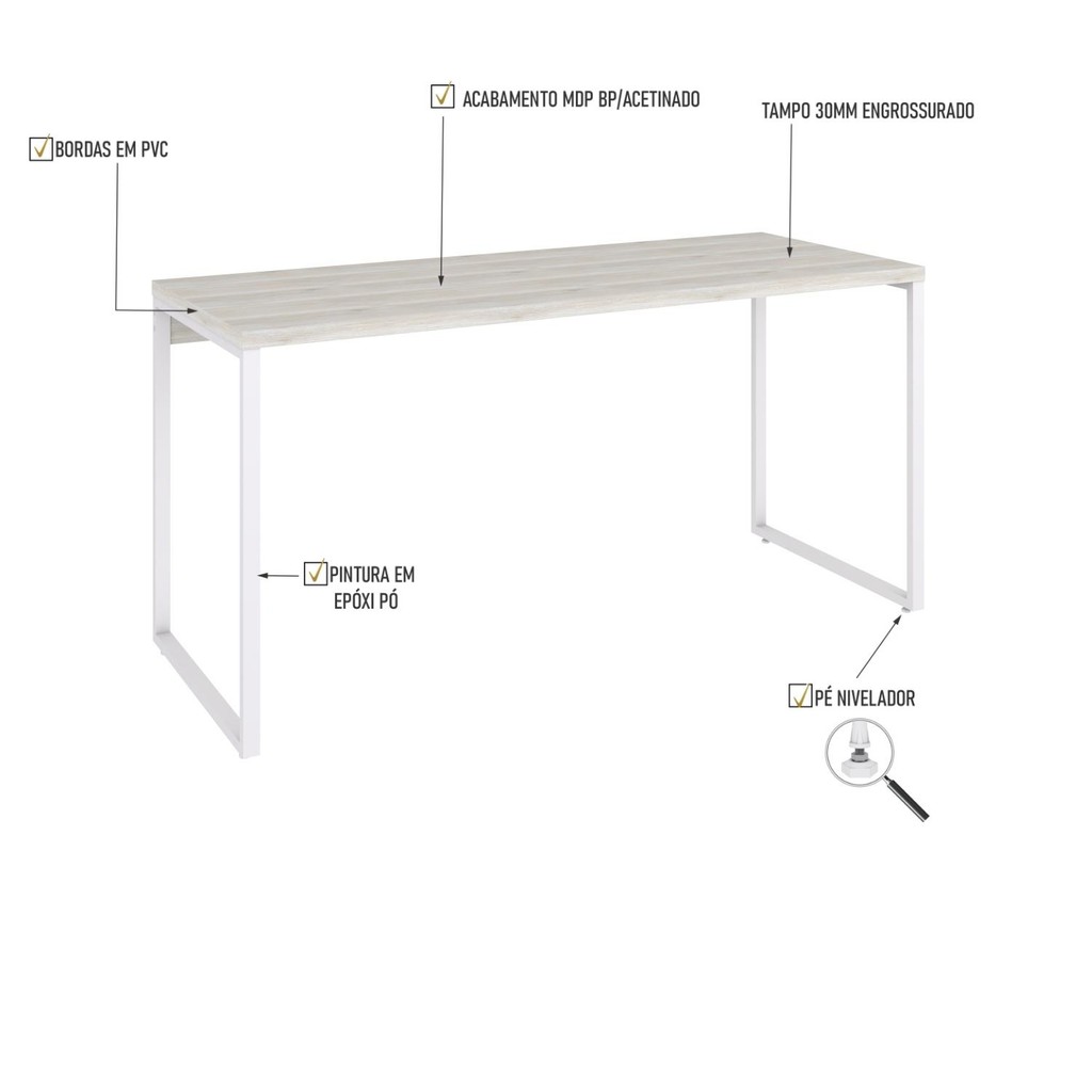Mesa Kuadra Office 150X60X75cm Estrutura Branca