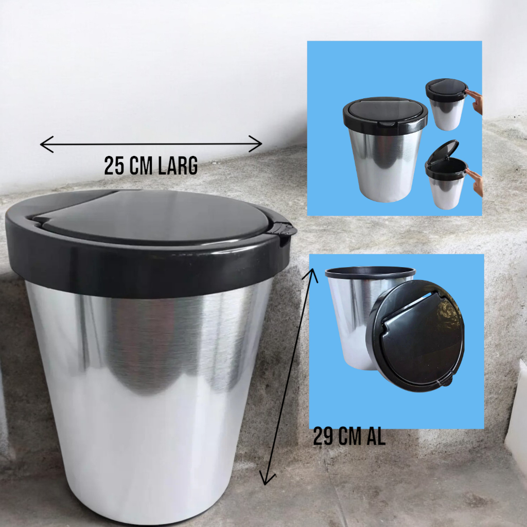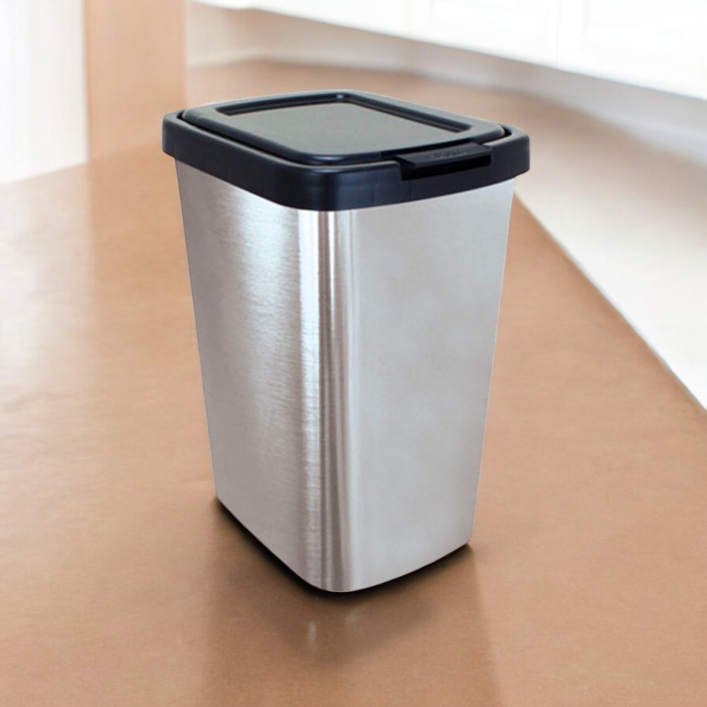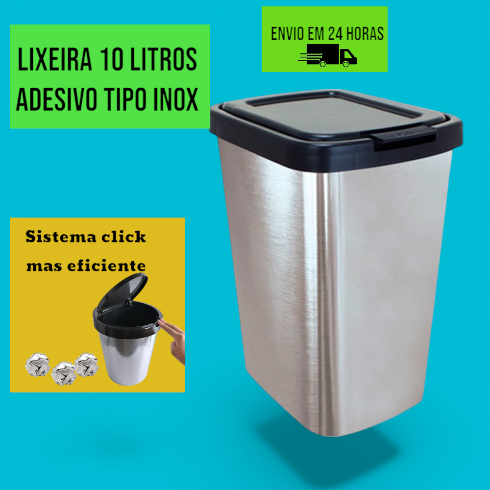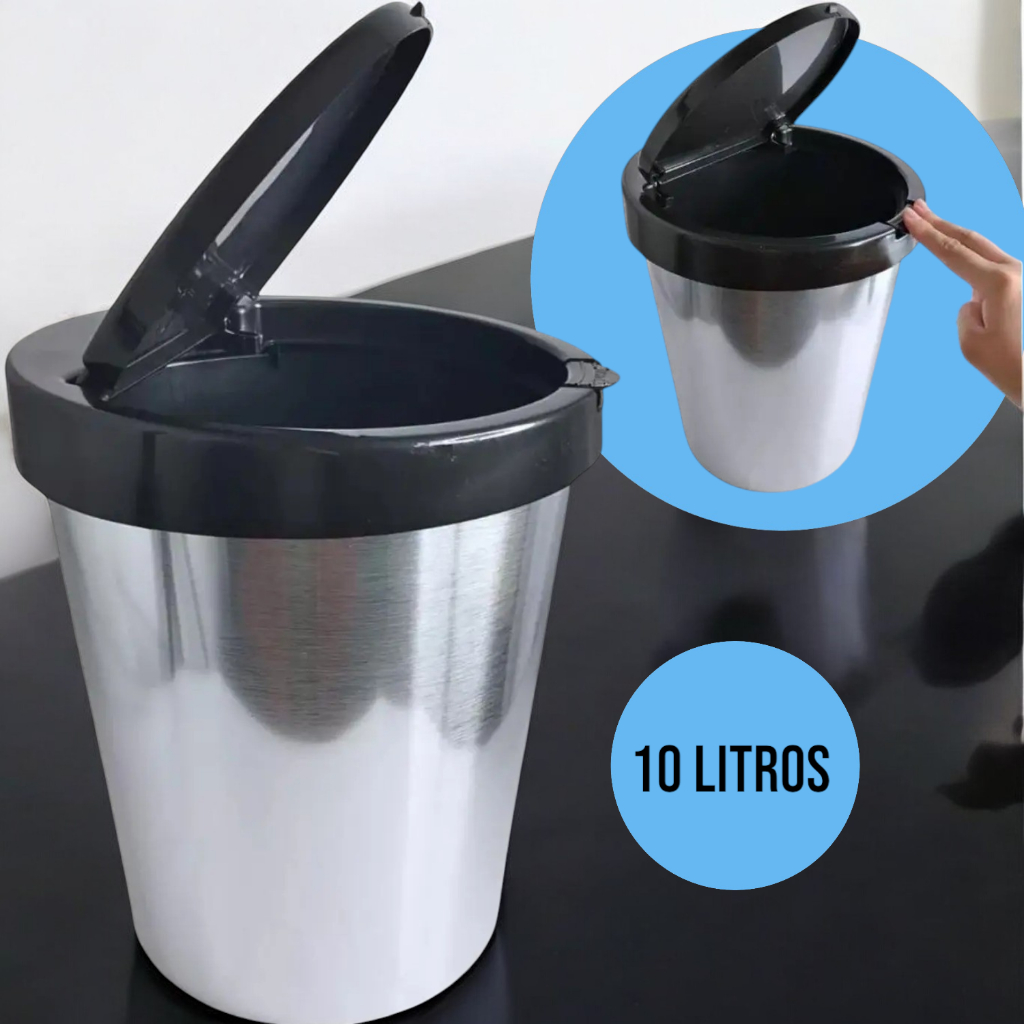 Lixeira 10 Litros com Tampa Click Label Cinza Inox escritório cozinha banheiro cesto lixo