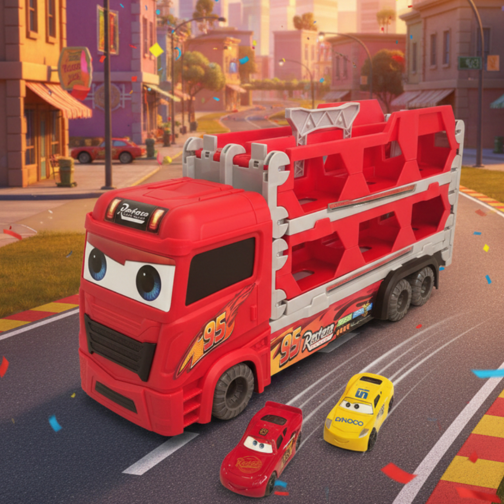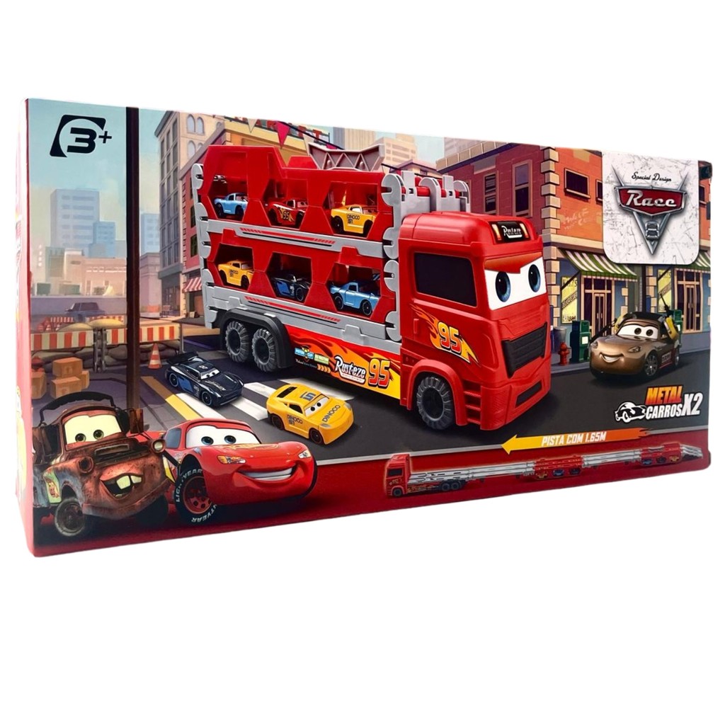 Caminhão Mcqueem Cegonha Pista Lançadora com Carrinho Maleta
