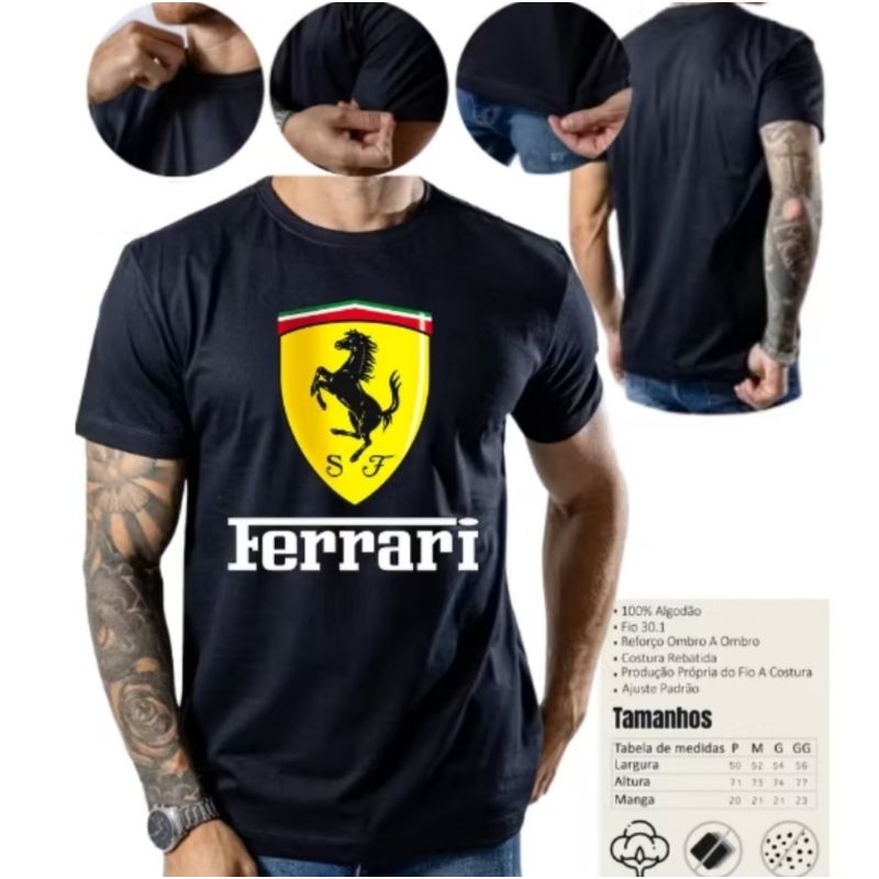 Camiseta Masculina Scuderia Ferrari Black Camisa Algodão Premium Lançamento P ao GG Envio Imediato