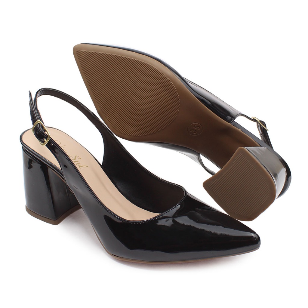 Scarpin Chanel Sapato Confortável Salto Médio Bloco Elegante