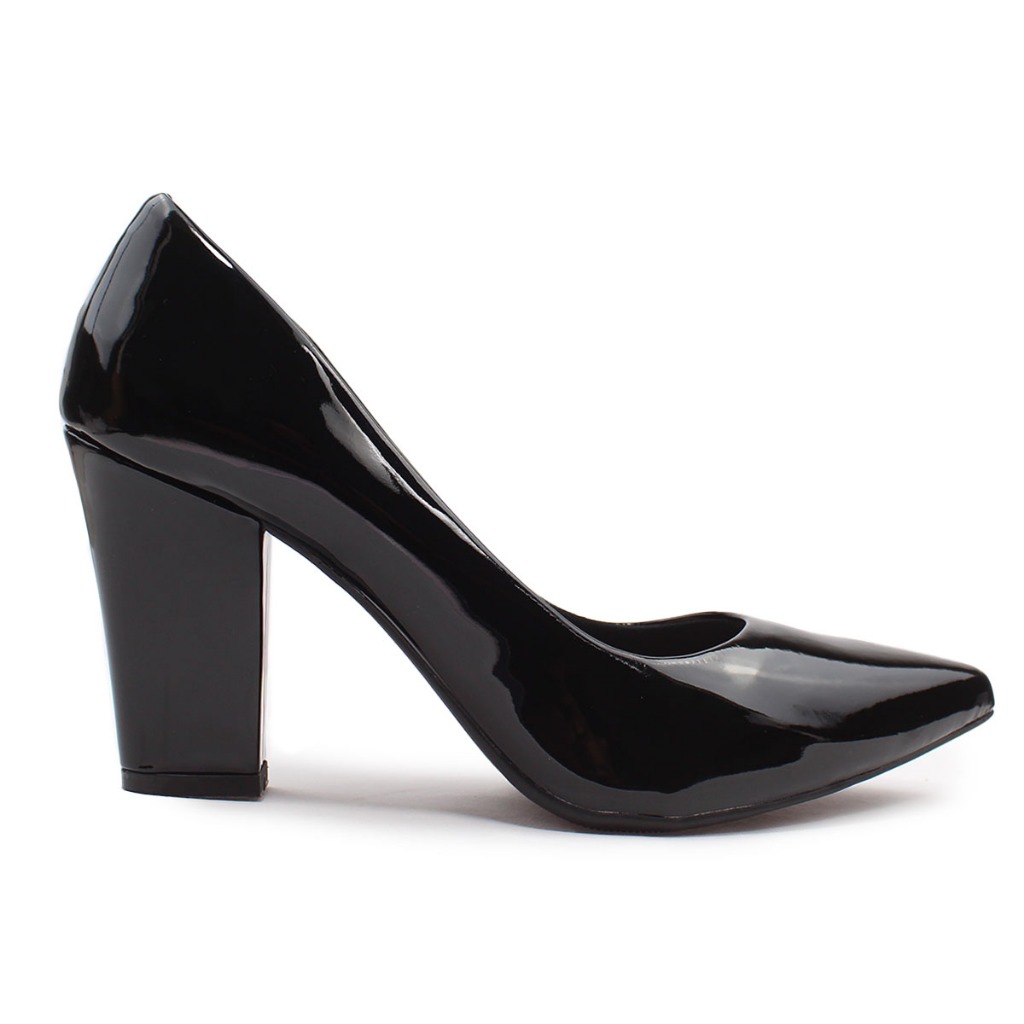 Scarpin Clássico Verniz com Salto Bloco Confortável Sapato Social
