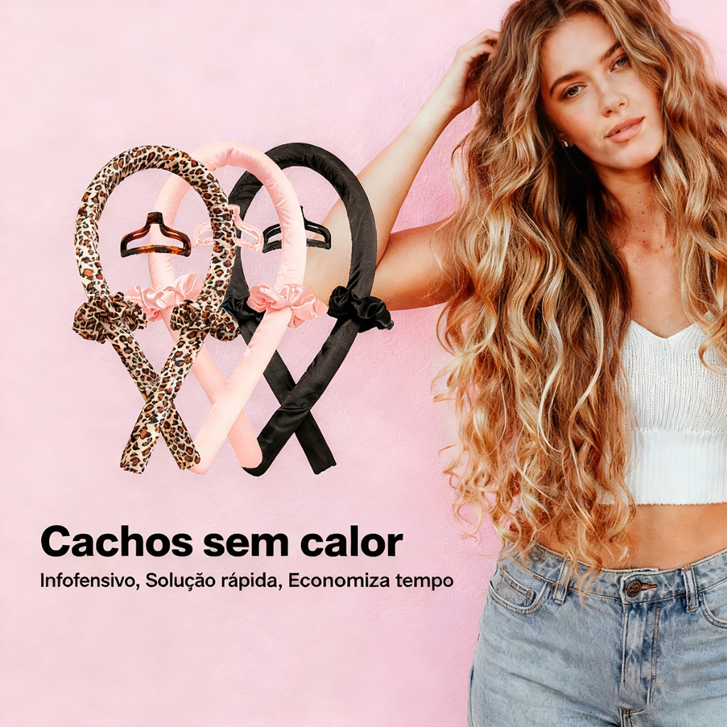 Modelador De Cachos Cetim (Heatless Curls) + 2 Scrunchies + Presilha