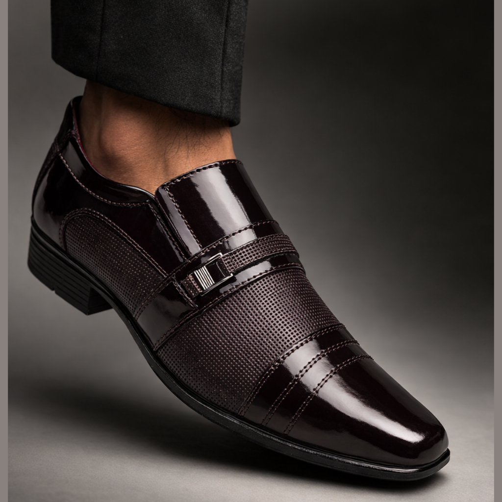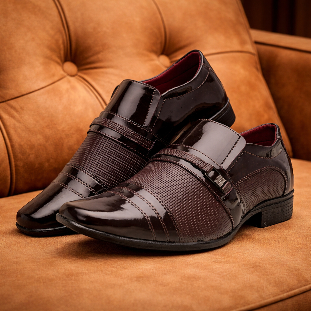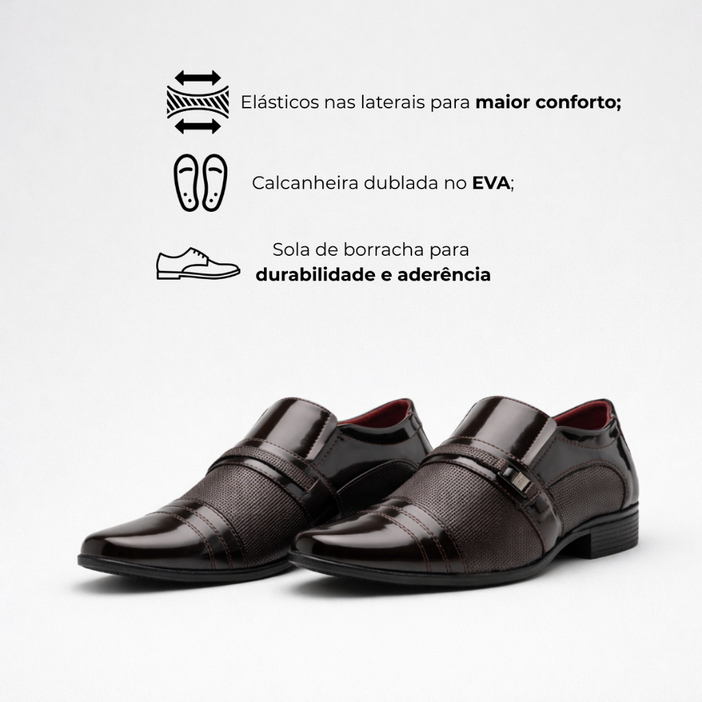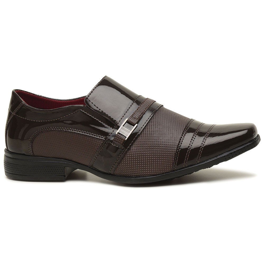 Sapato Social Masculino Verniz Café Bico Quadrado Contortável Casual Garçon Trabalho Igreja Noivo