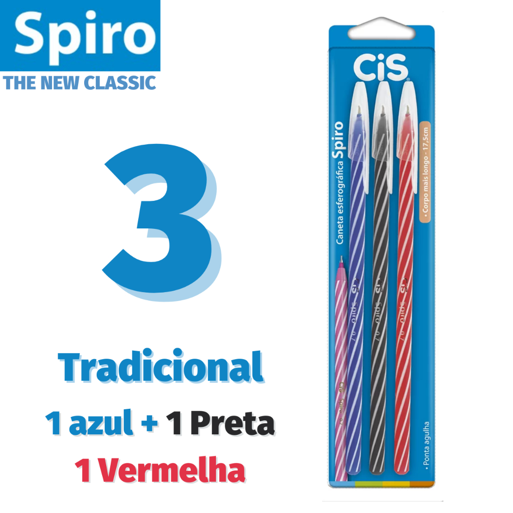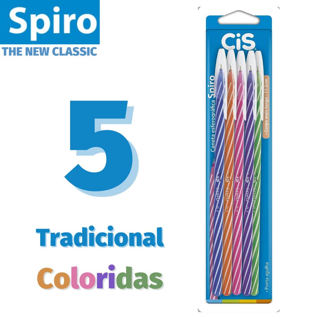 Caneta Cis Spiro Ponta Agulha Ultra Fina 0.7mm Corpo Longo - Tradicional Original Coloridas