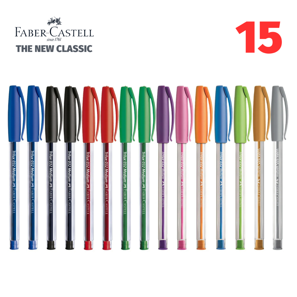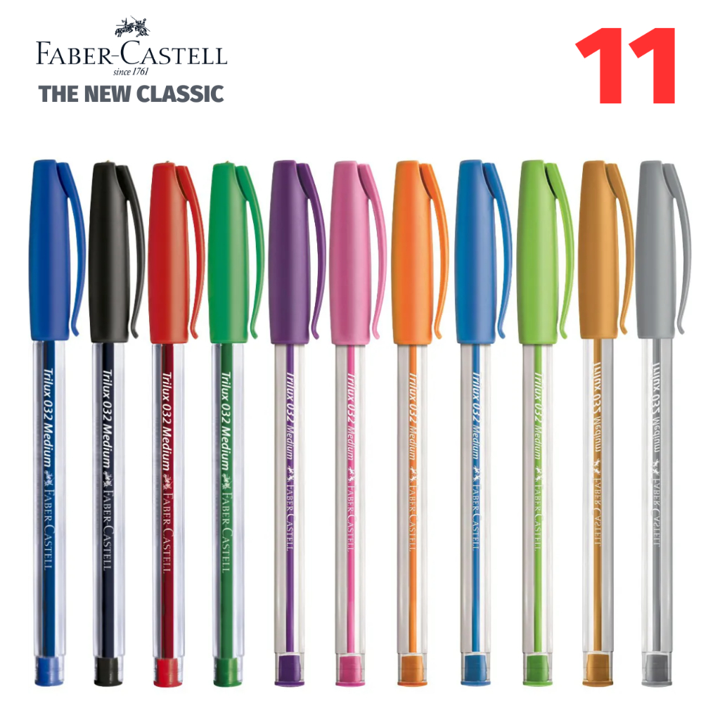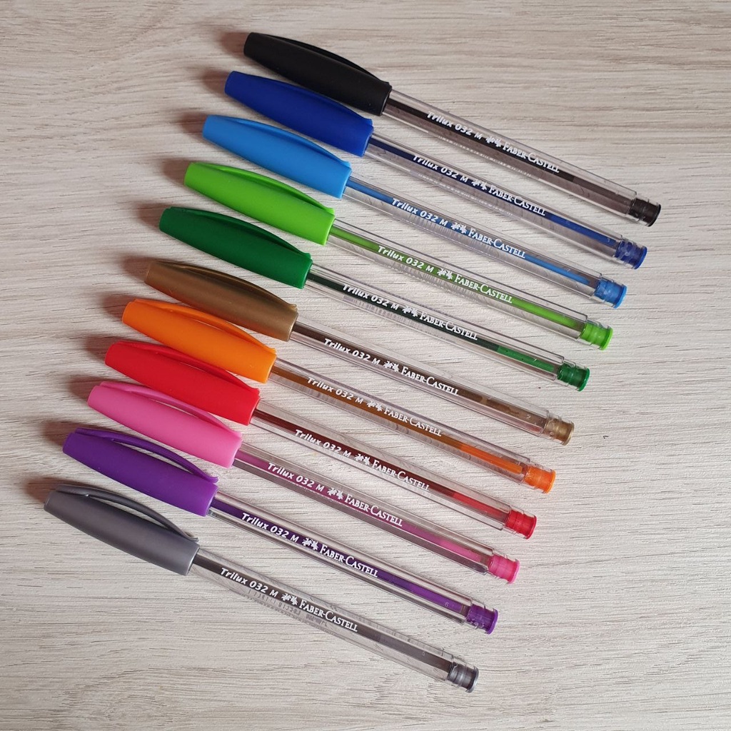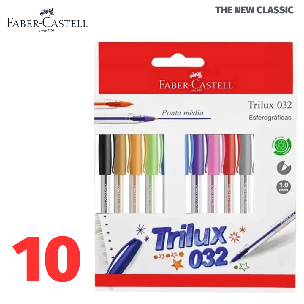 Kit Caneta Faber Castell Trilux Colors 1.0mm Corpo Transparente Colorida Tom Pastel Coleção Completa