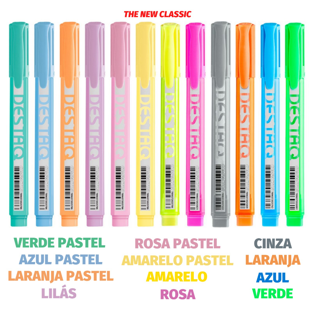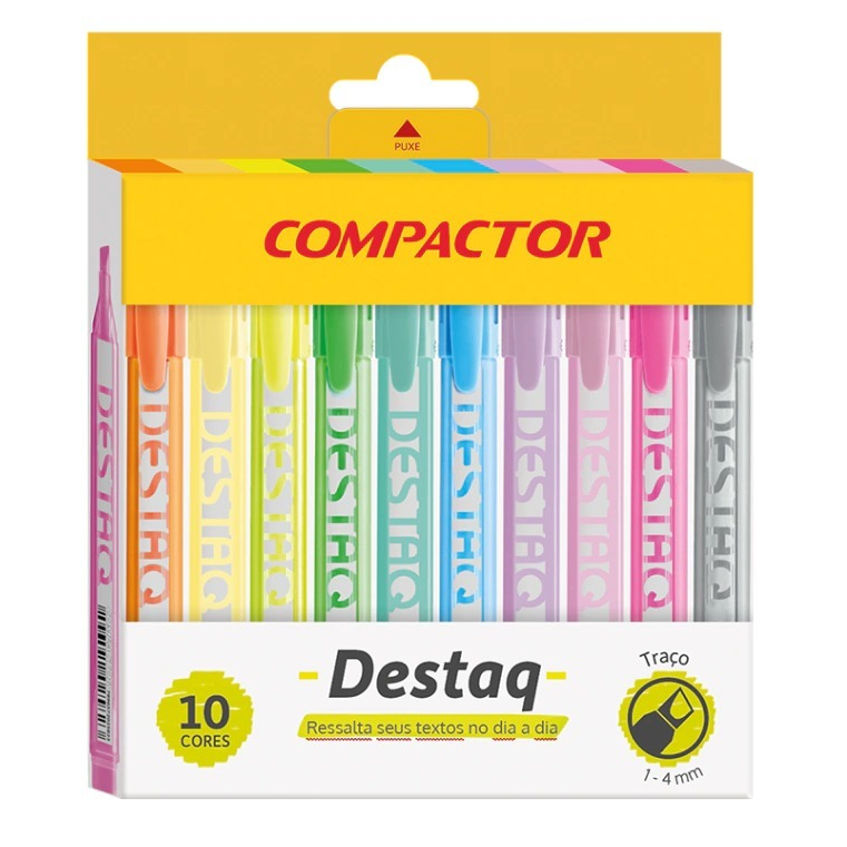 Kit Marca Texto Compactor Destaq - Tons Pastel e Neon (Mentos Fruit-tella Perfumado)