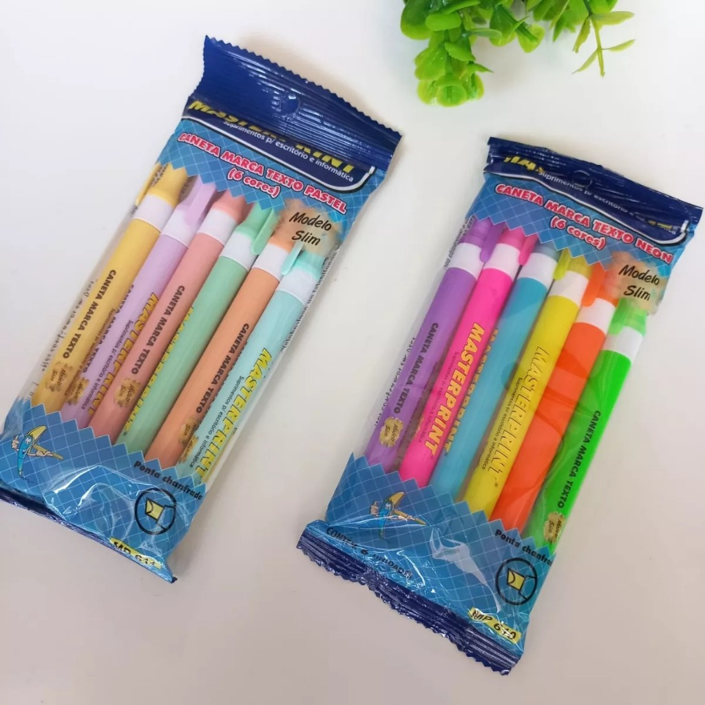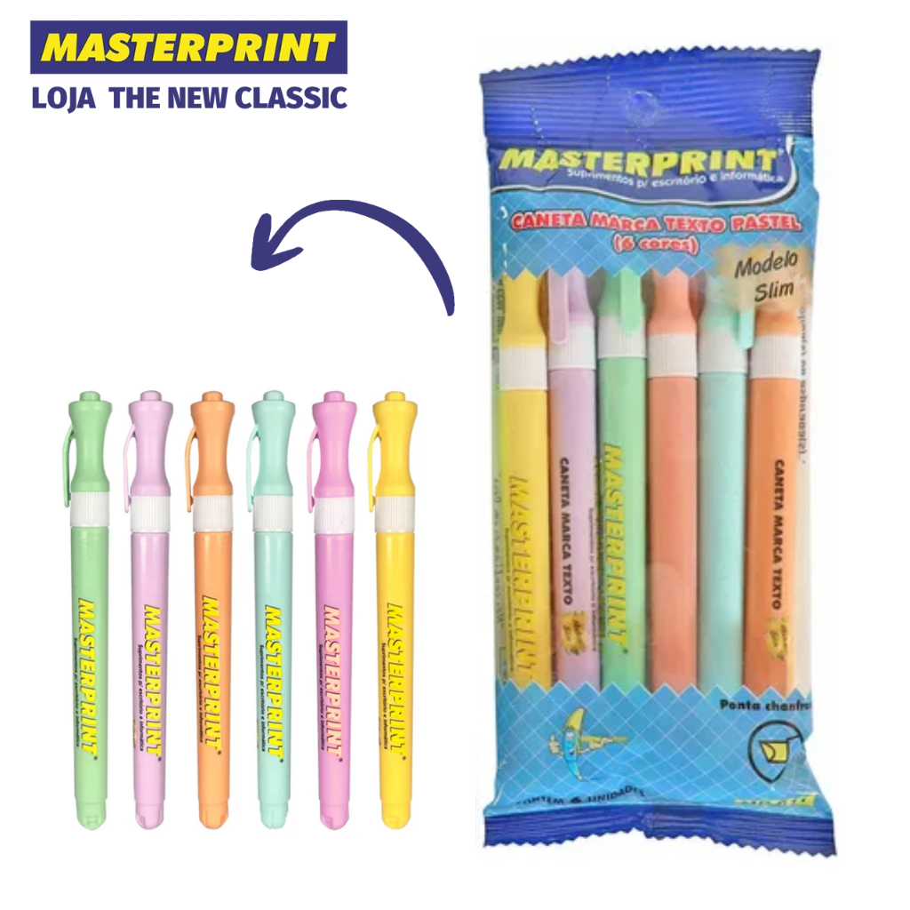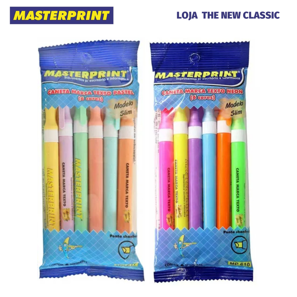 Kit Caneta Marca Texto Masterprint - Tom Pastel, Neon, Metálico e Slim