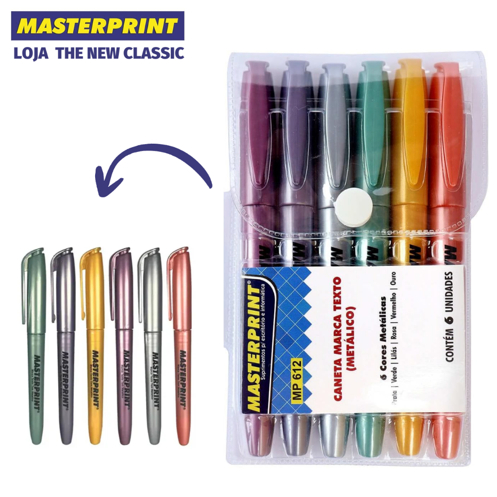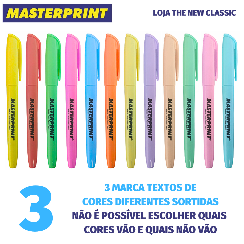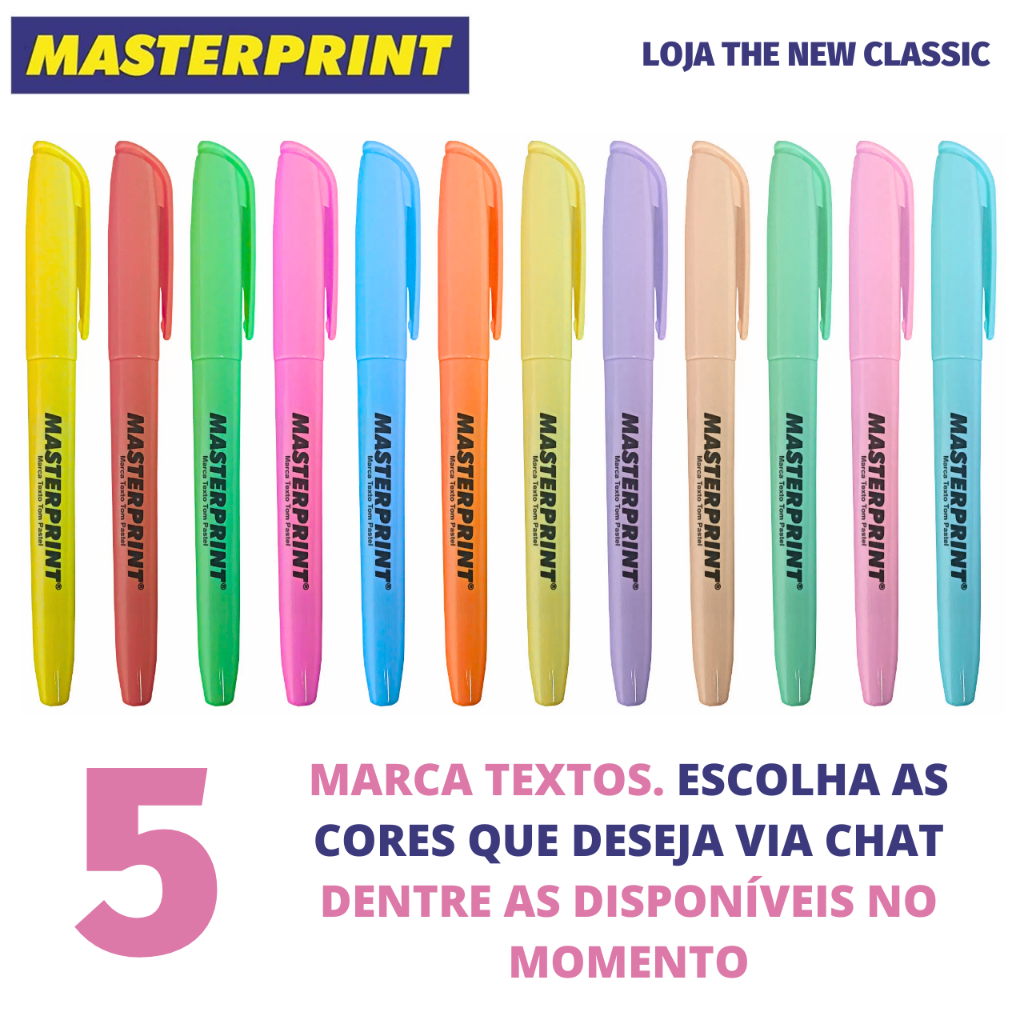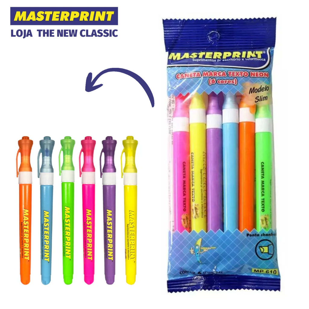 Kit Caneta Marca Texto Masterprint - Tom Pastel, Neon, Metálico e Slim