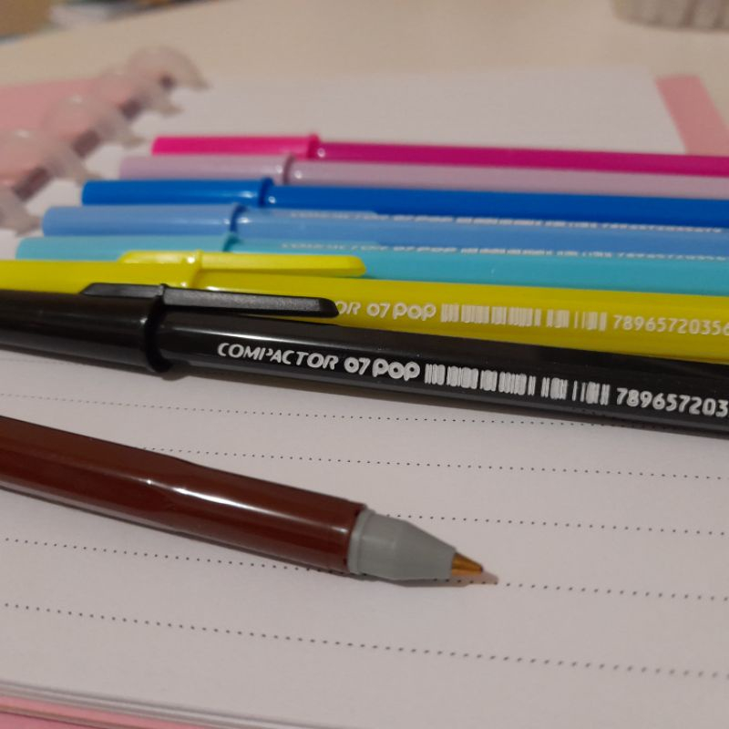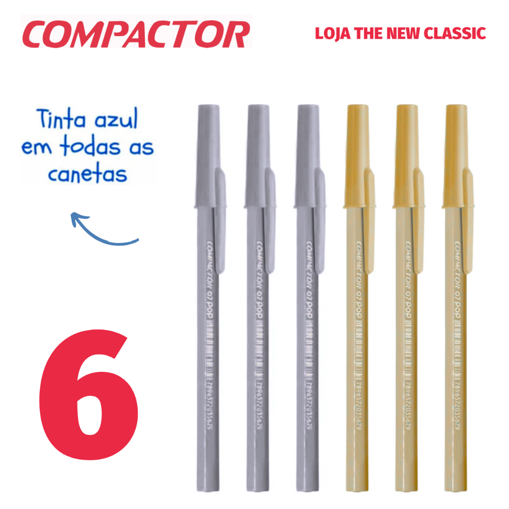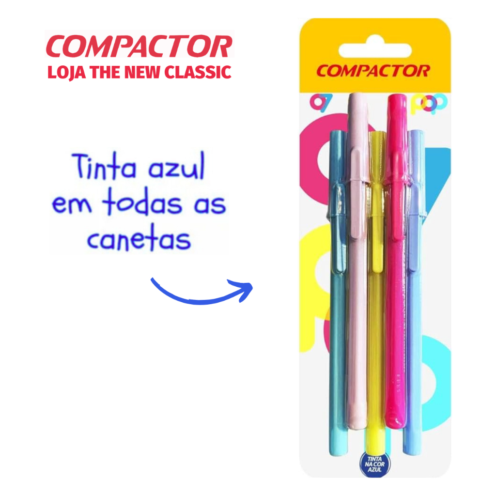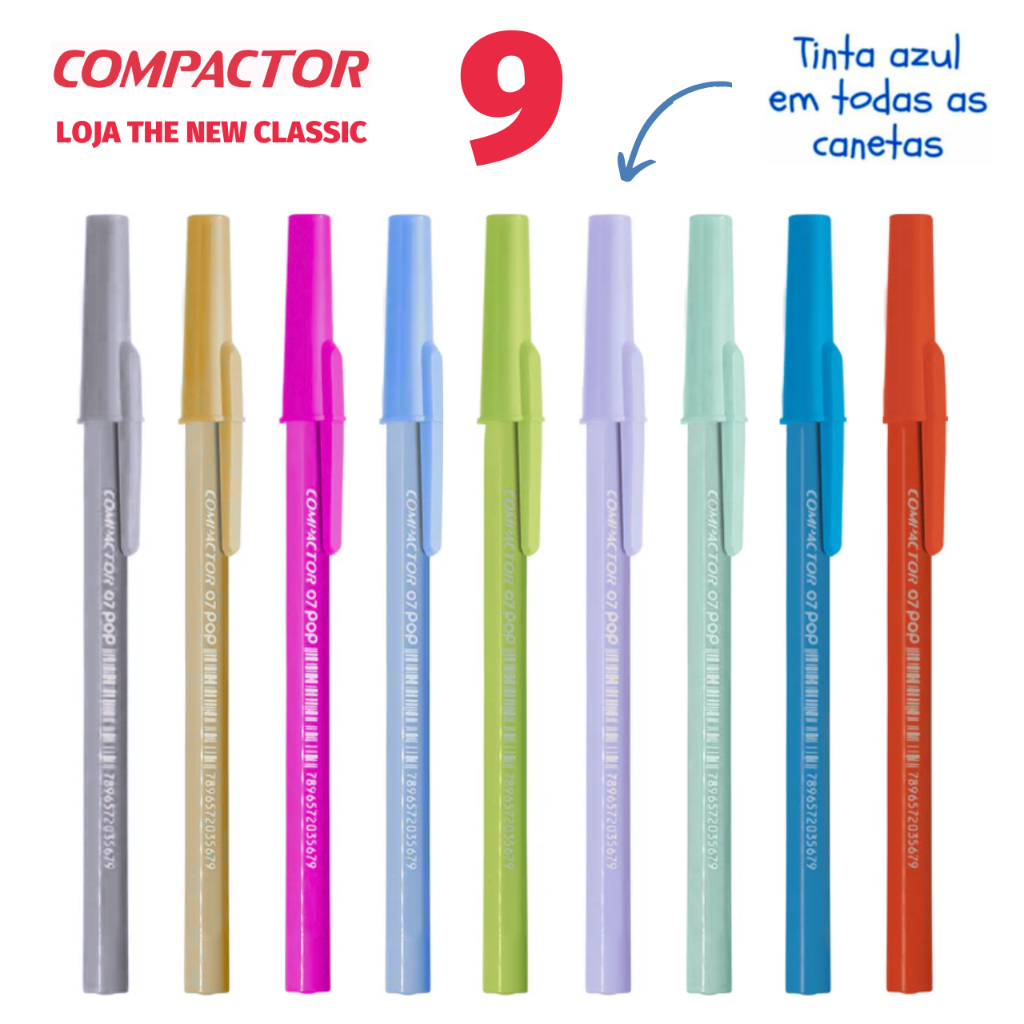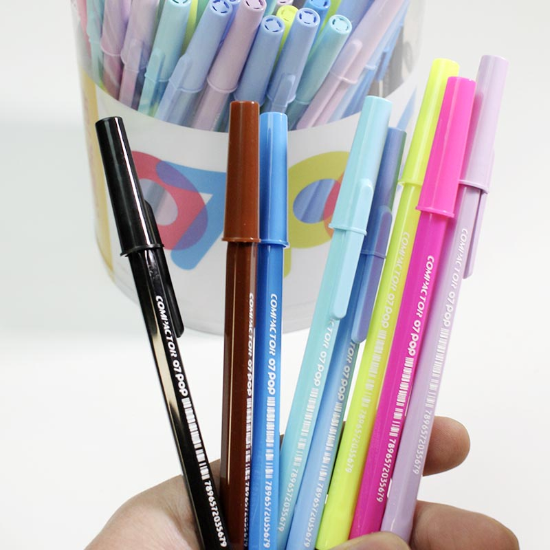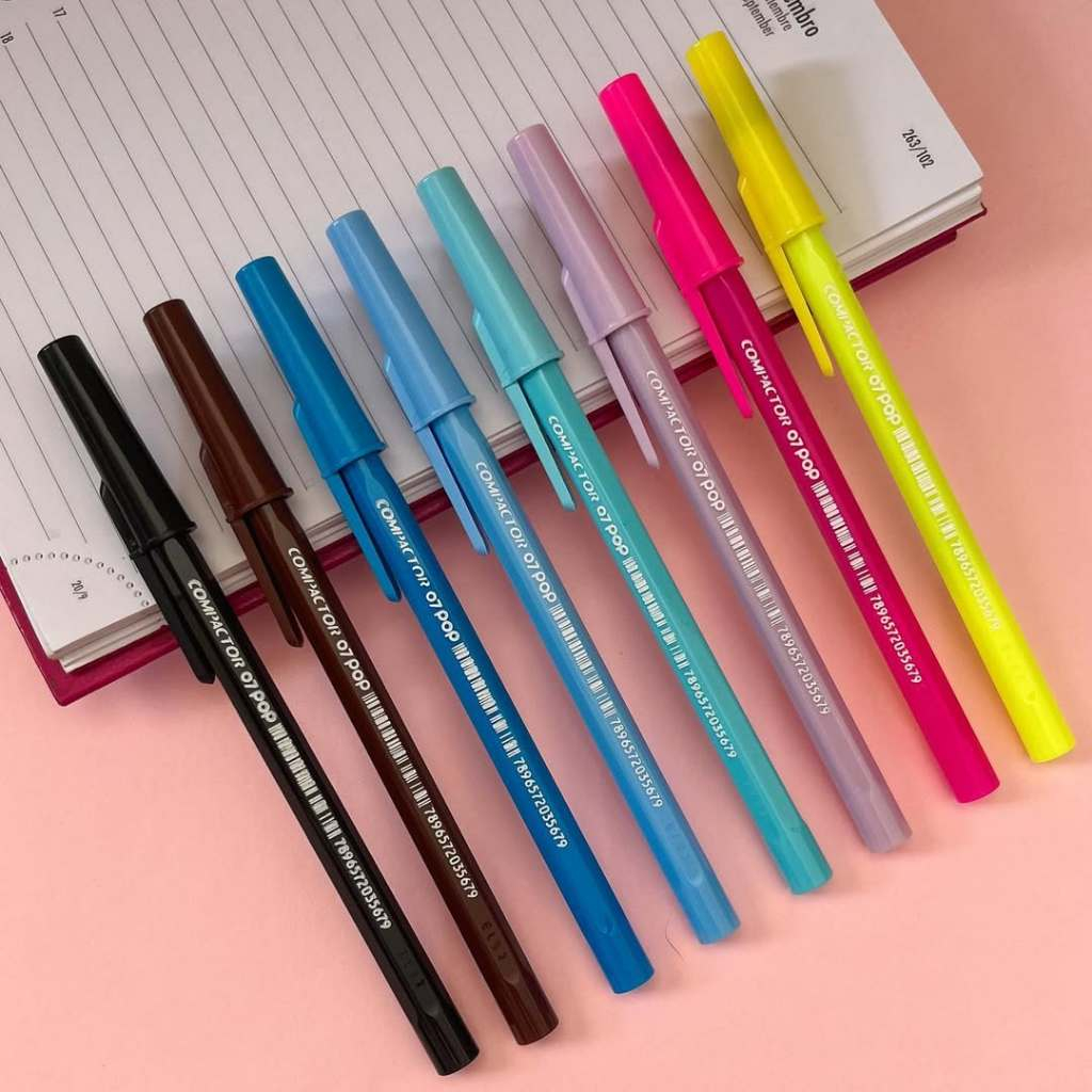 Caneta Compactor POP Ponta Fina 0.7mm Tons Pastel Prata Ouro - Escrita Azul