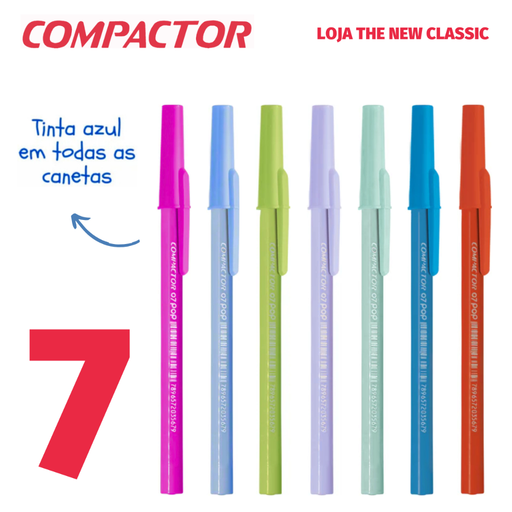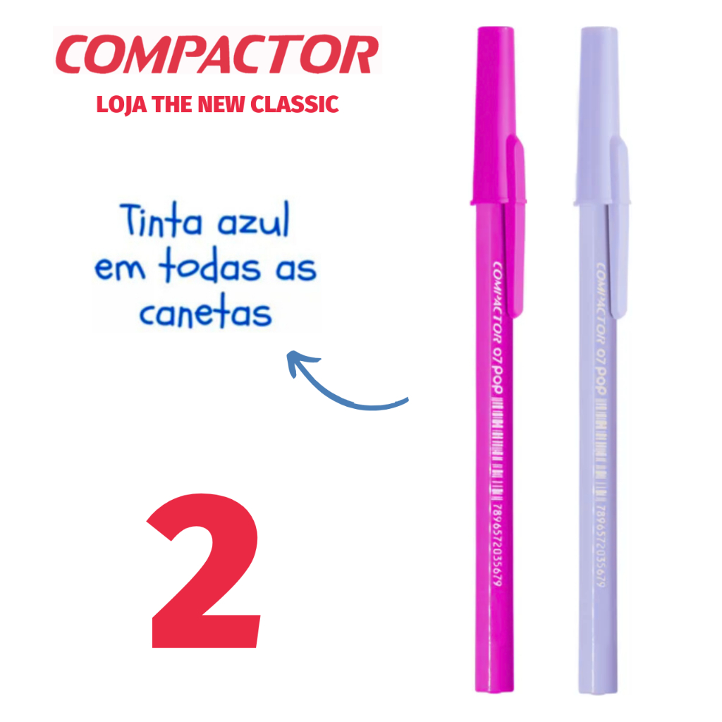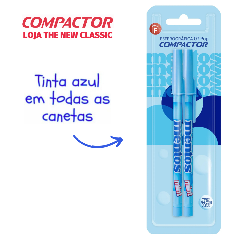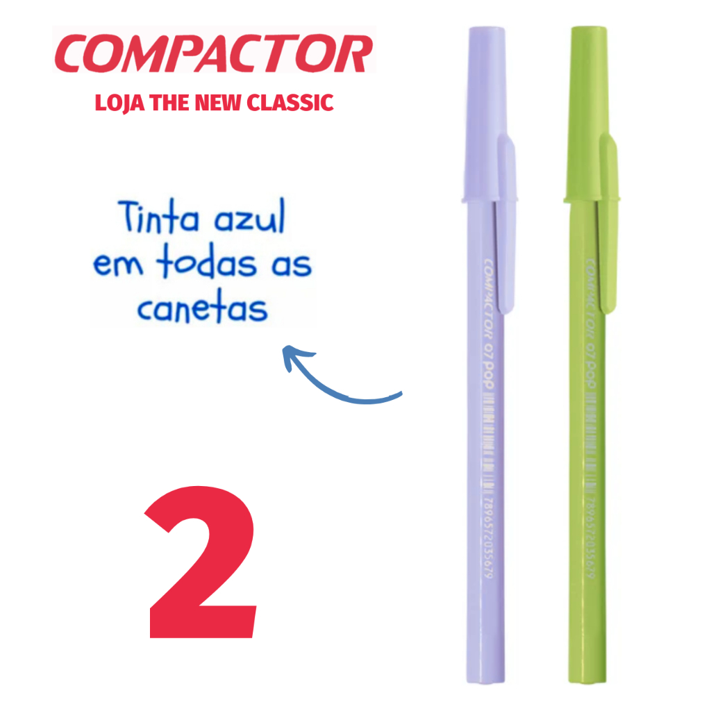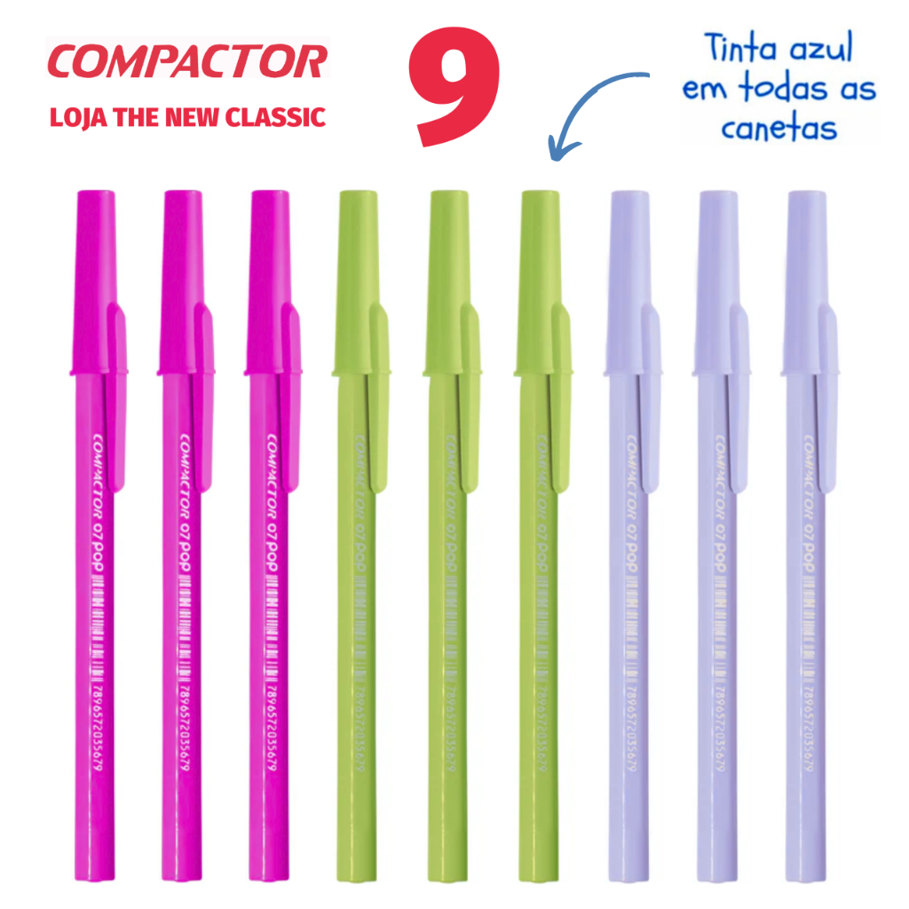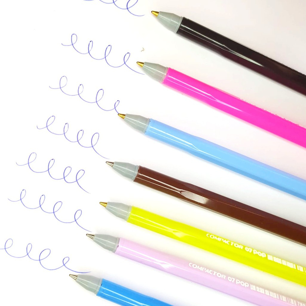 Caneta Compactor POP Ponta Fina 0.7mm Tons Pastel Prata Ouro - Escrita Azul