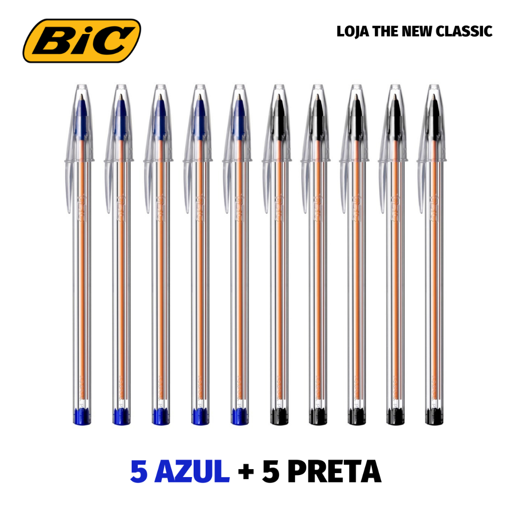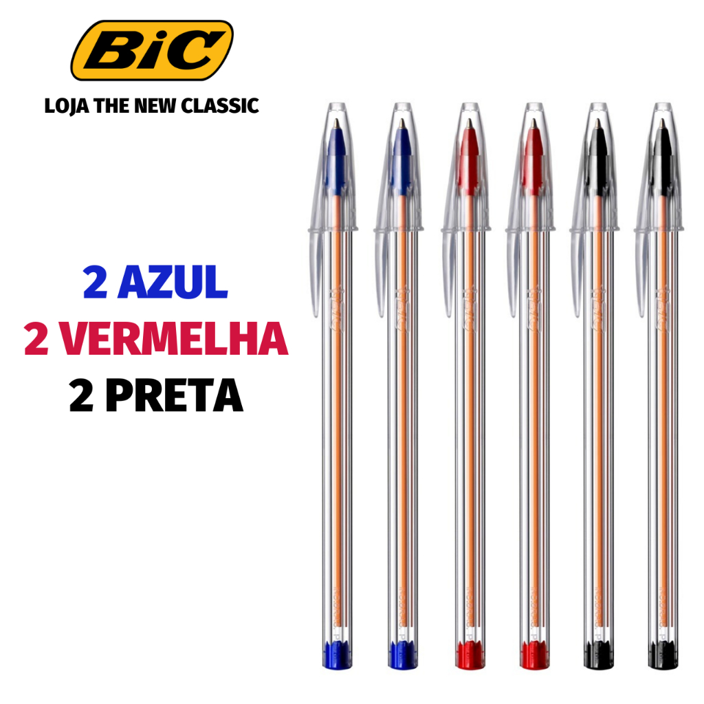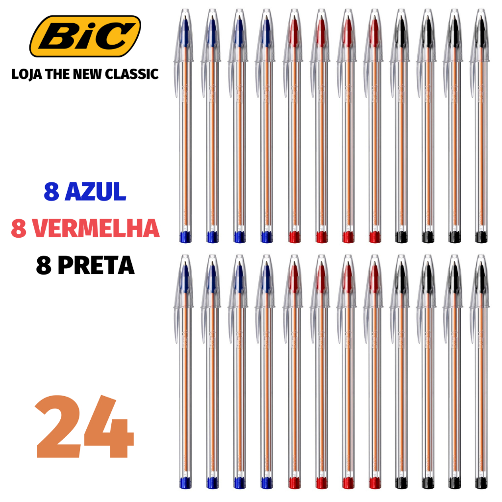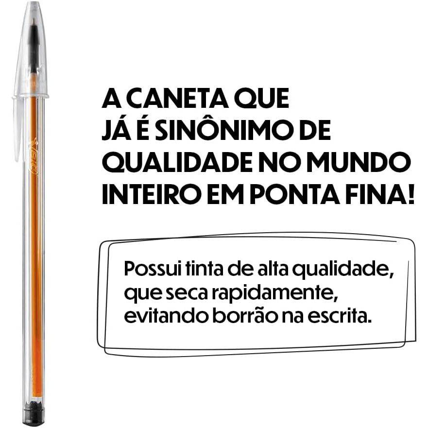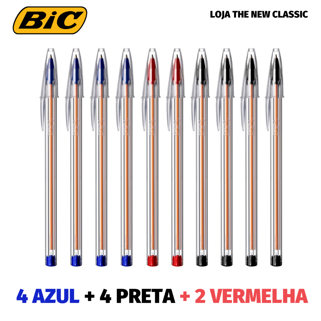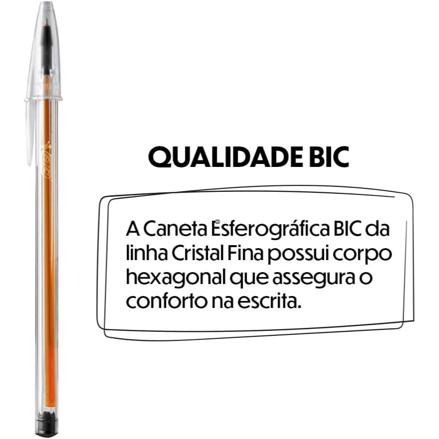 Kit Caneta Bic Cristal Fina Ponta 0.8mm Corpo Transparente Coloridas