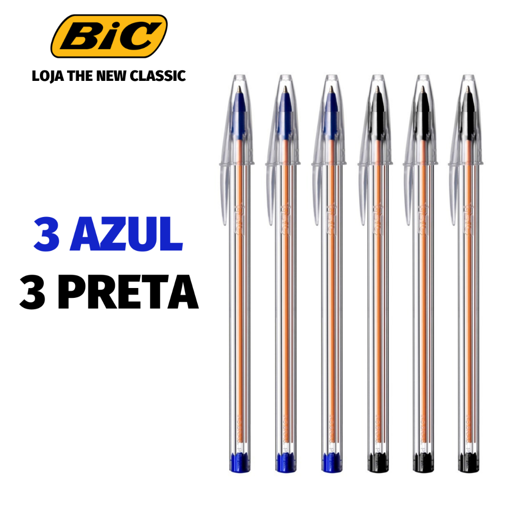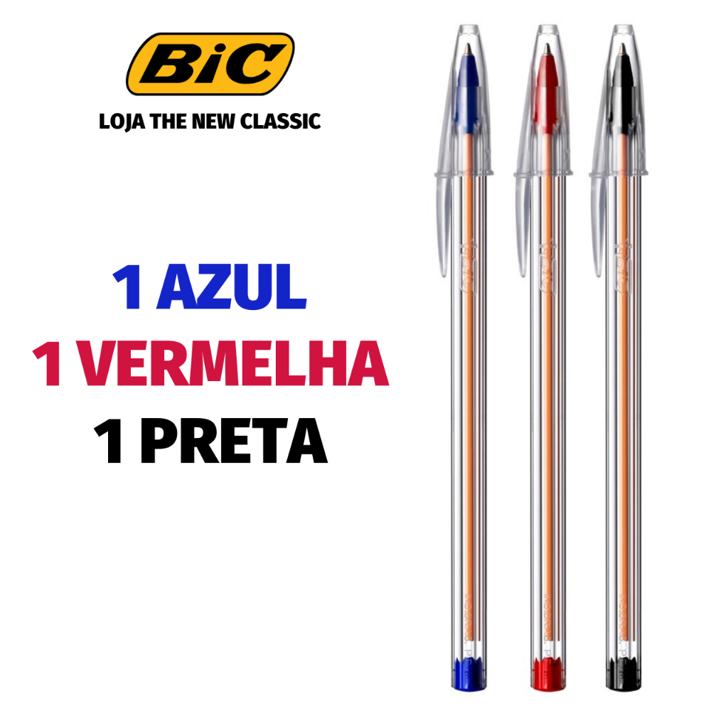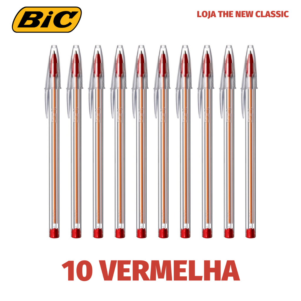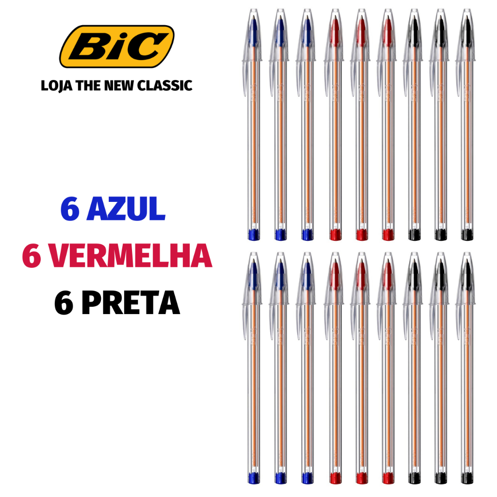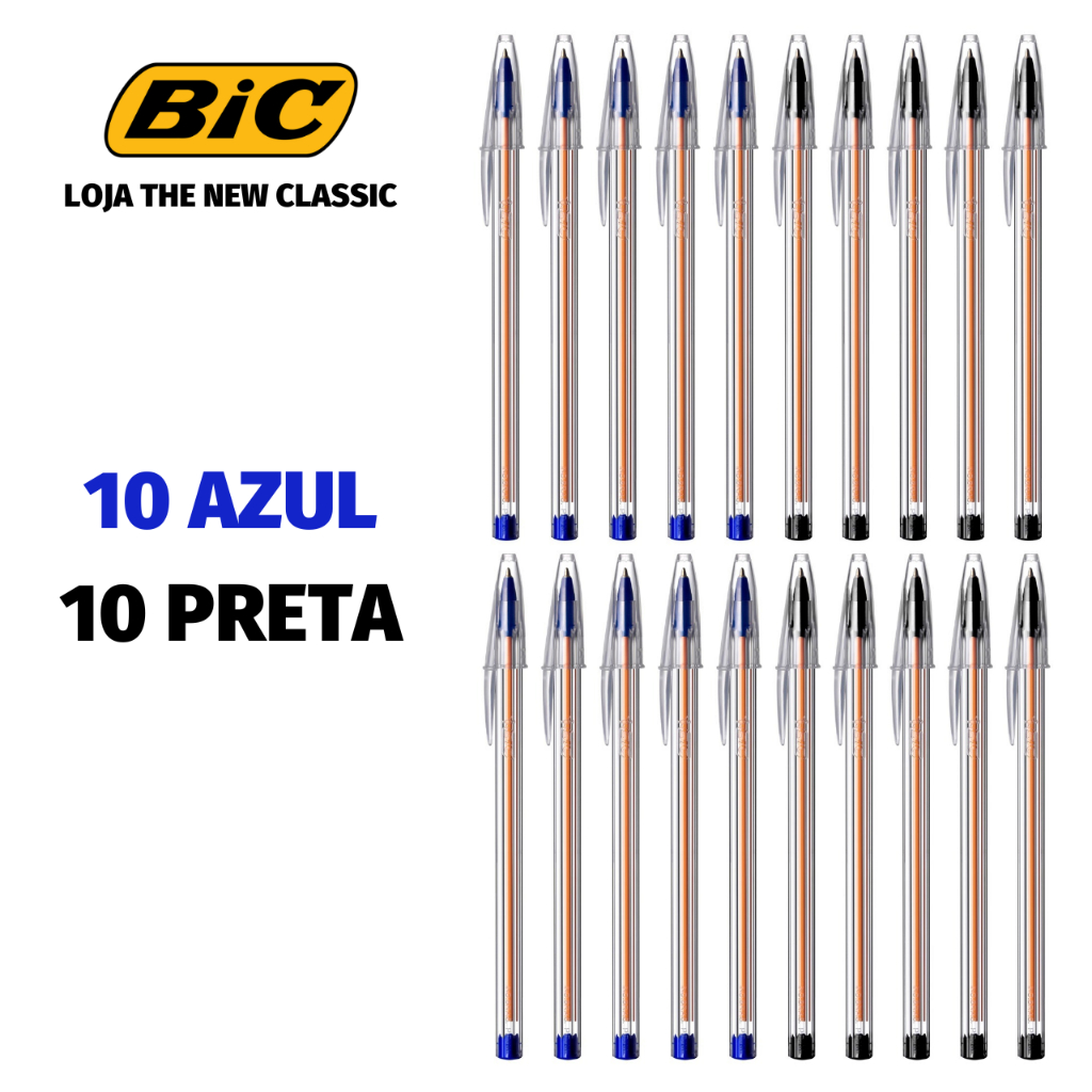 Kit Caneta Bic Cristal Fina Ponta 0.8mm Corpo Transparente Coloridas
