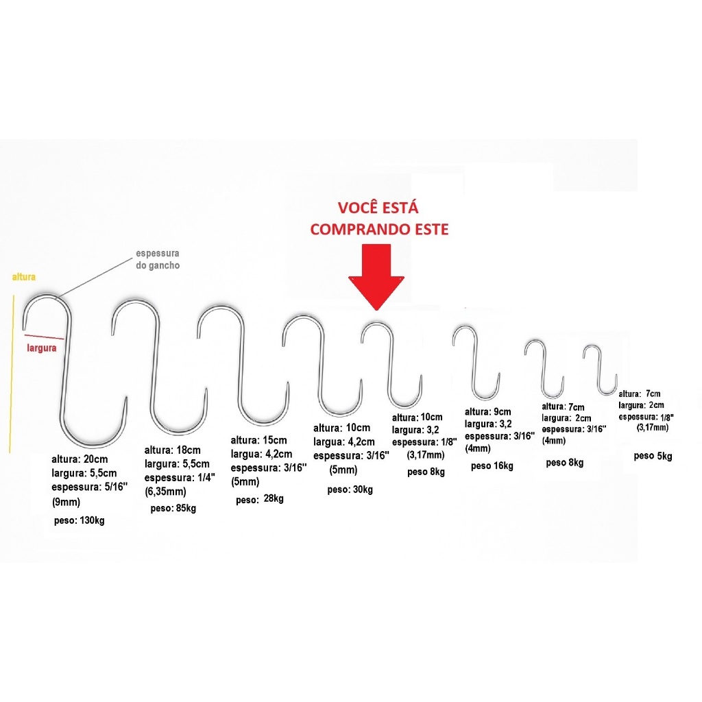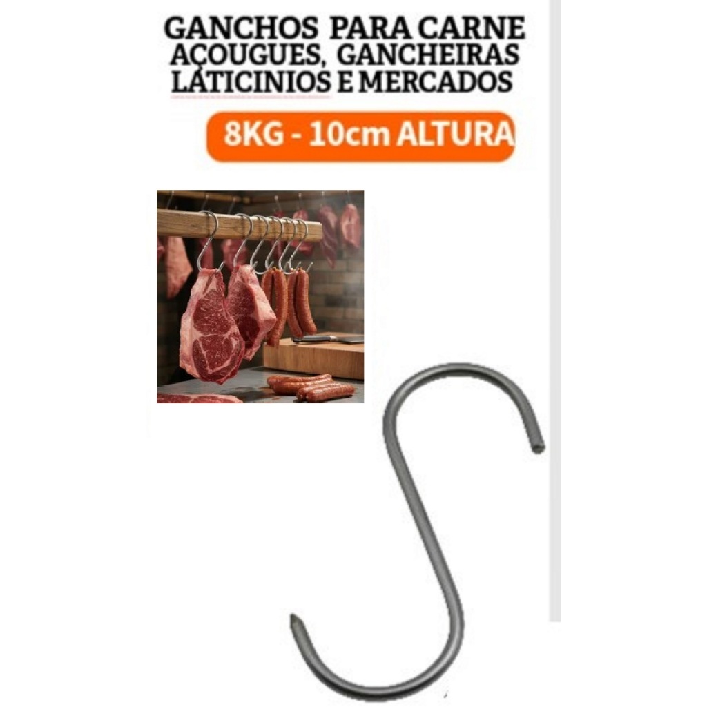 Gancho Inox 1/8'' Multiuso Para Açougue Mercado Feira laticínios carnes plantas para 8kg