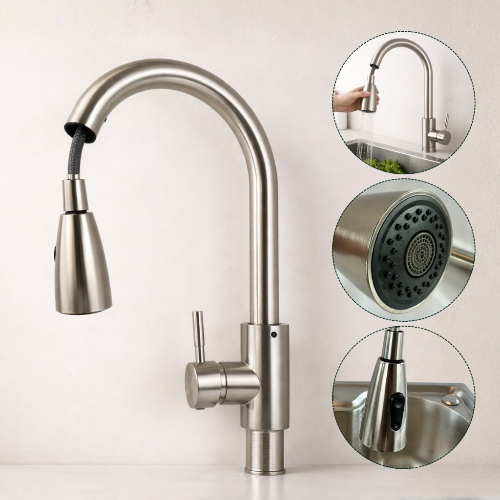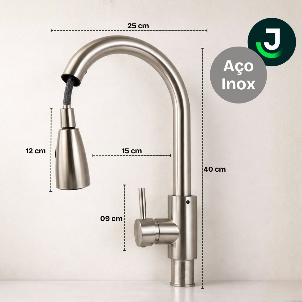 Torneira de Cozinha Pia Gourmet Inox Monocomando com Chuveirinho Flexível