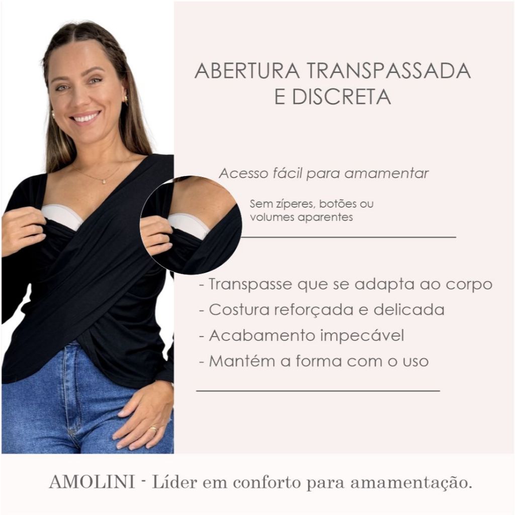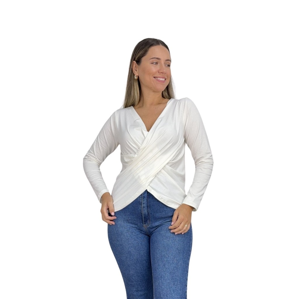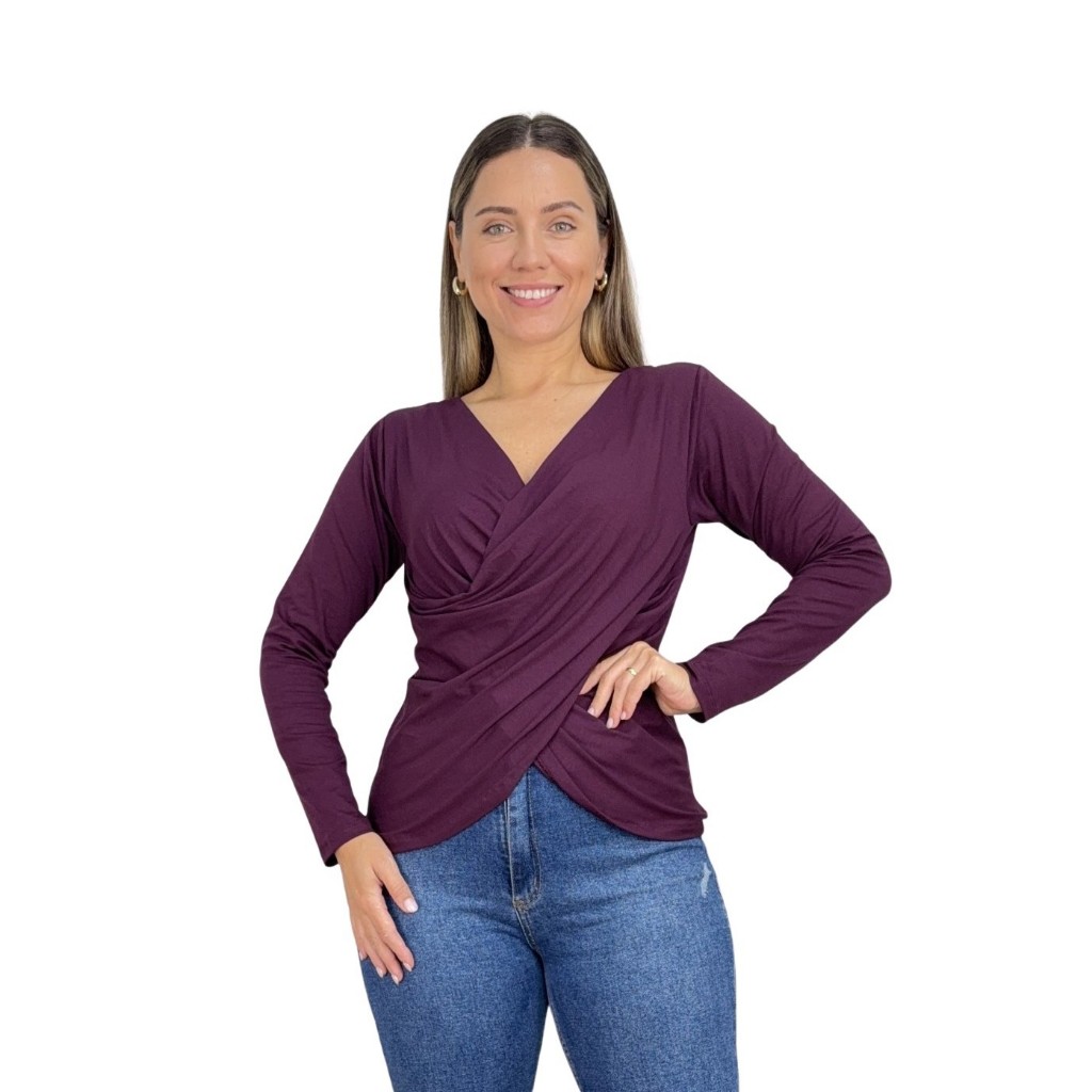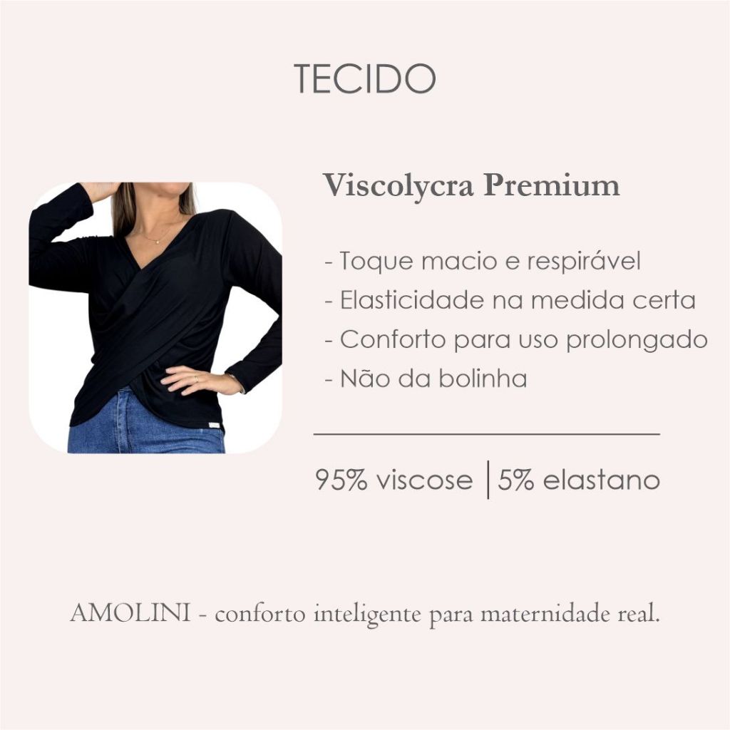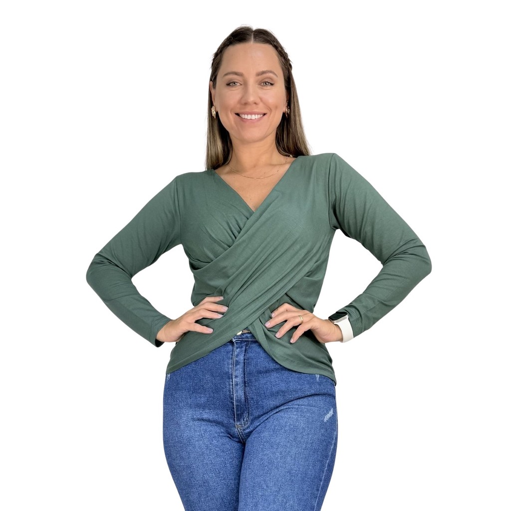 Blusa Transpassada Amamentação Diversas Cores Viscolycra Premium T-shirt Manga Longa Maternidade