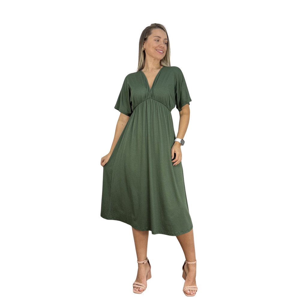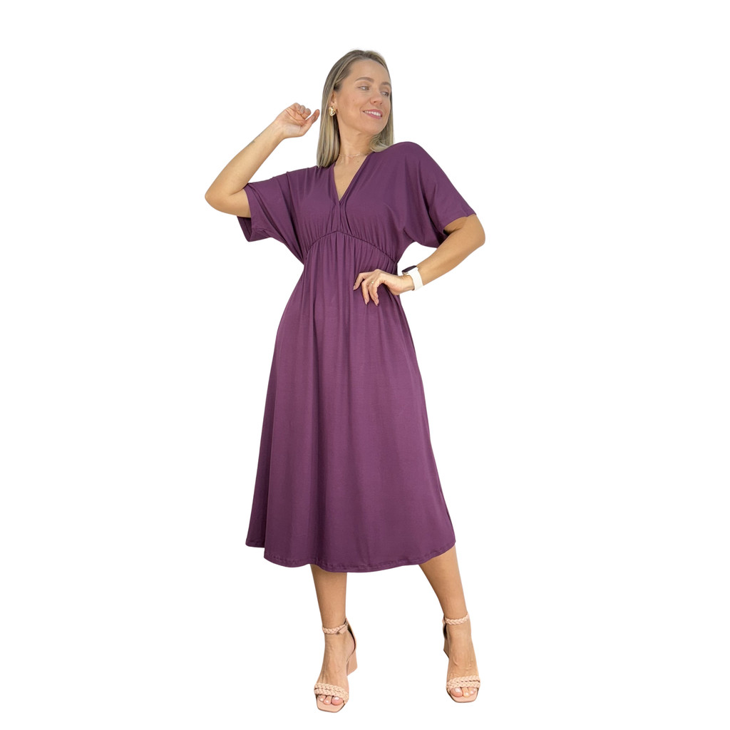 Vestido Manga Morcego Midi Premium Gestante Amamentação Moda Casual Gravida Pós Parto Maternidade