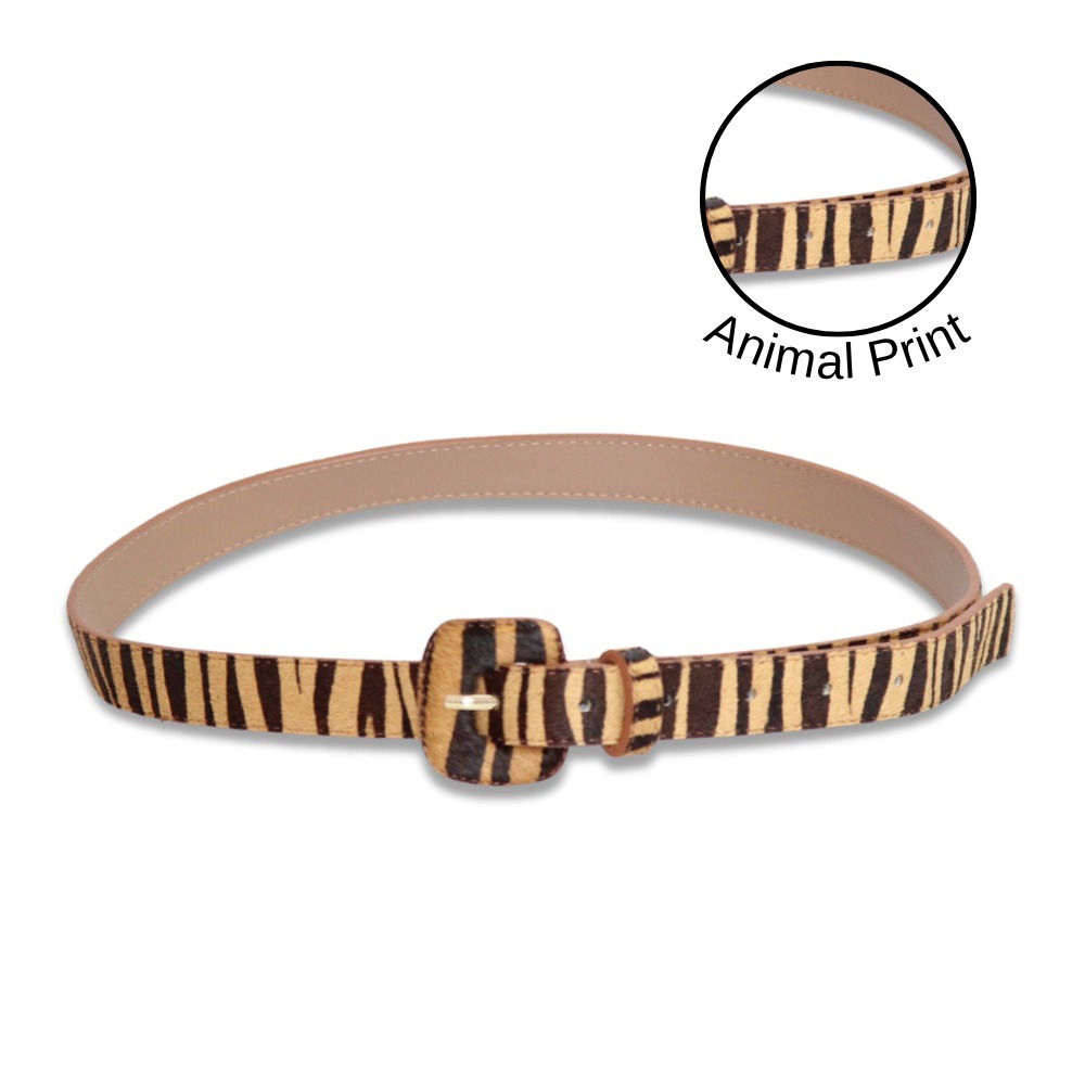 Cinto Feminino Couro Animal Print Fivela Encapada Redonda Pequena