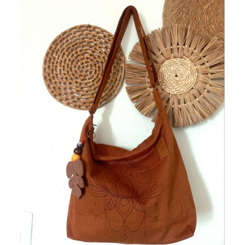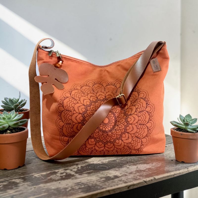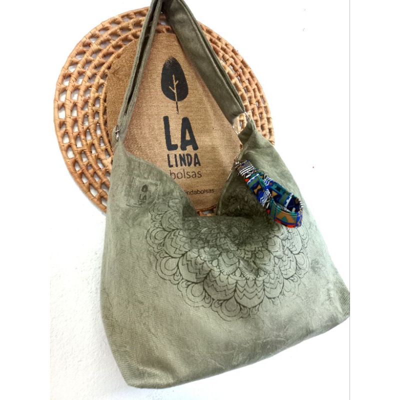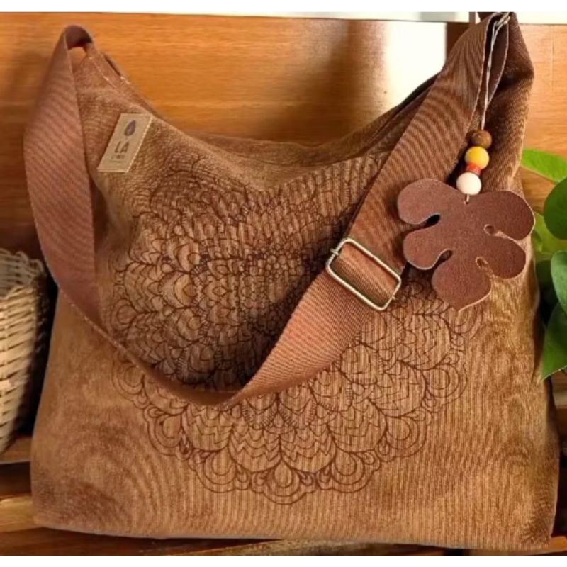 Bolsa feminina Transversal e Ombro Mandala Veludo cotelê