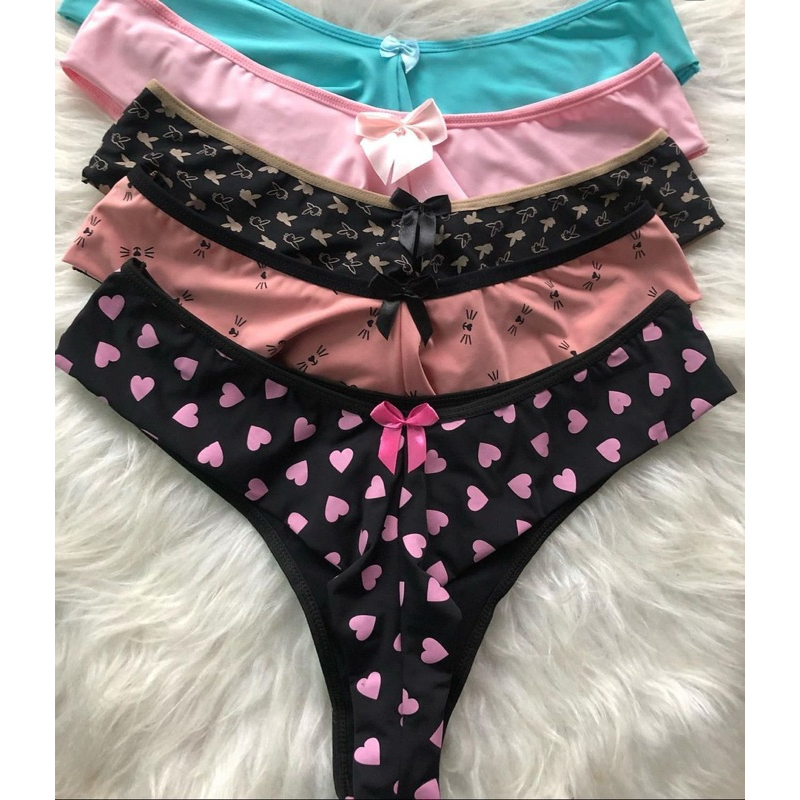 Kit Calcinhas Fio Duplo Plus Size GG Microfibra Lisas e estampadas Confortável