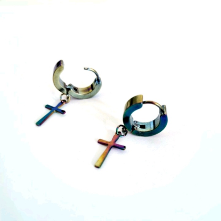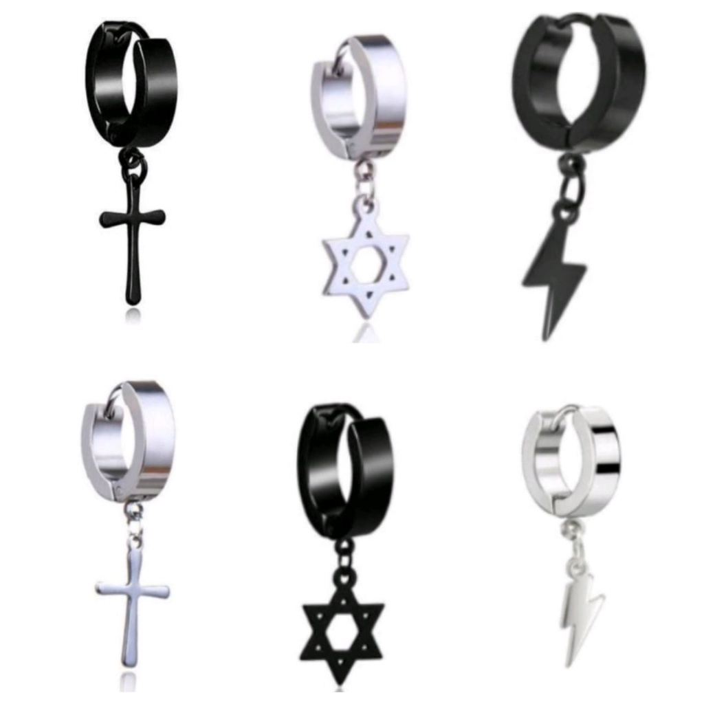 Brinco Argola Raio Crucifixo Estrela Argolinha Aço Inox Unissex