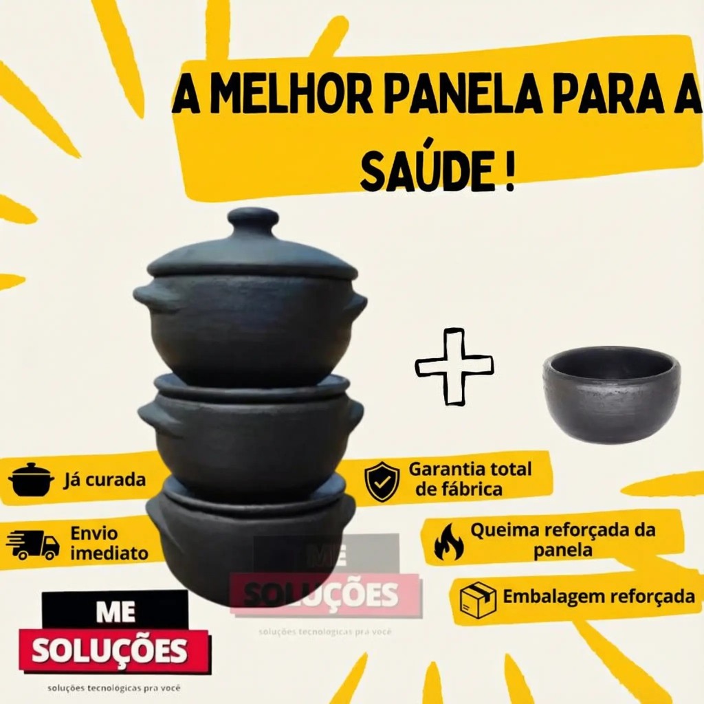 Kit 3 Panelas de Barro Capixaba Preto 1,5L + Cumbuca | Original | Alta Resistência